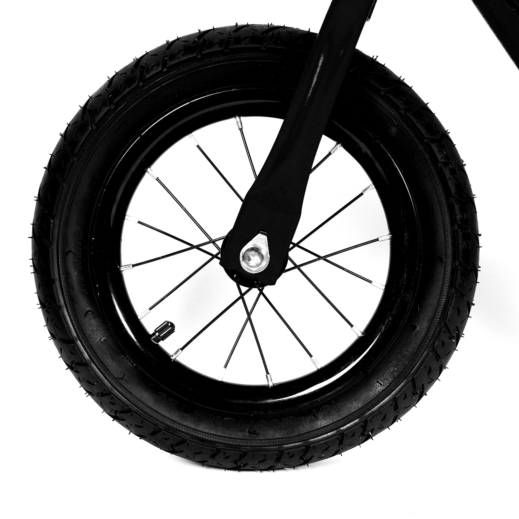 Колелото за баланс е оборудвано с въздушни гуми с размер 12"*2.125, които осигуряват гладко и удобно пътуване дори по неравен терен. Стоманените джанти добавят здравина и надеждност на цялото колело. Височината на кормилото е фиксирана на 55 см, което е идеално за малки деца, за да могат лесно да достигат и управляват своето балансиращо колело.