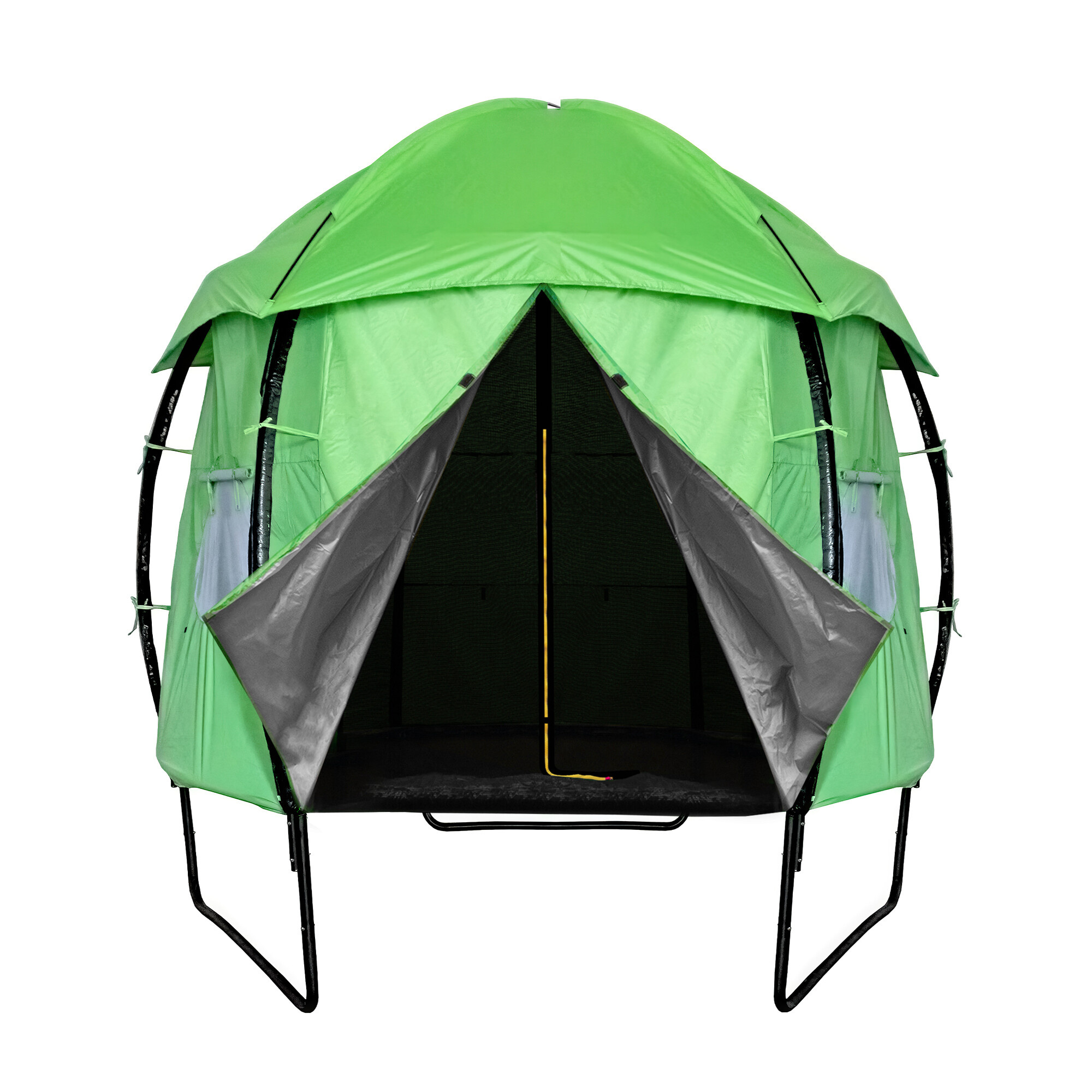 А когато батутът не се използва активно, палатката помага да се защити отскачащата повърхност от замърсяване и UV лъчение.