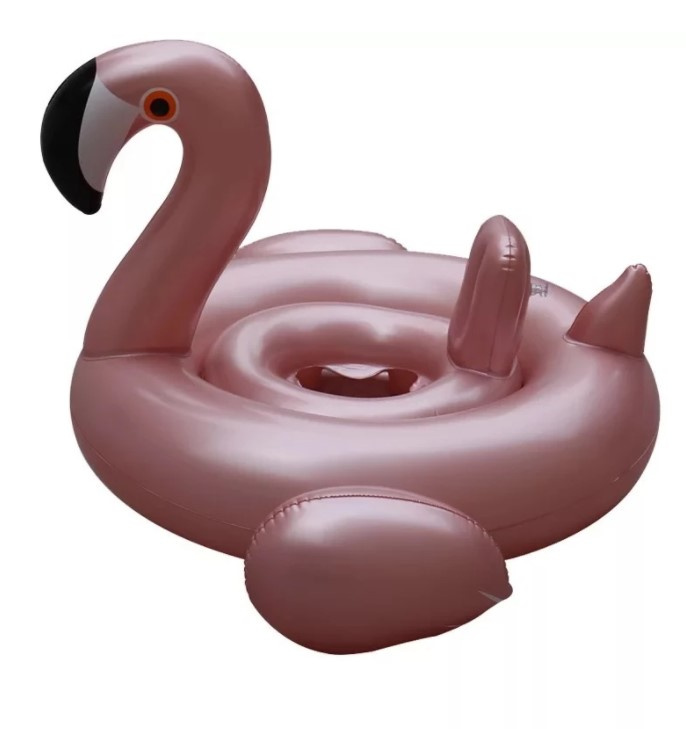 Розов надуваем пояс във формата на фламинго за деца със седалка, от висококачествена PVC пластмаса, гарантираща дълготрайност.