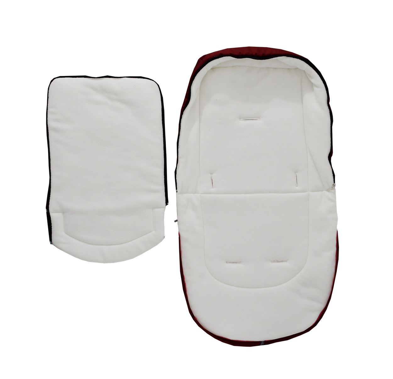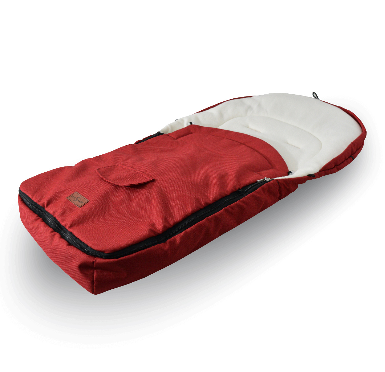 Бебешката кошара има отвор с цип, отвори за 5-точкови предпазни колани и гумени дръжки за закрепване към количката.