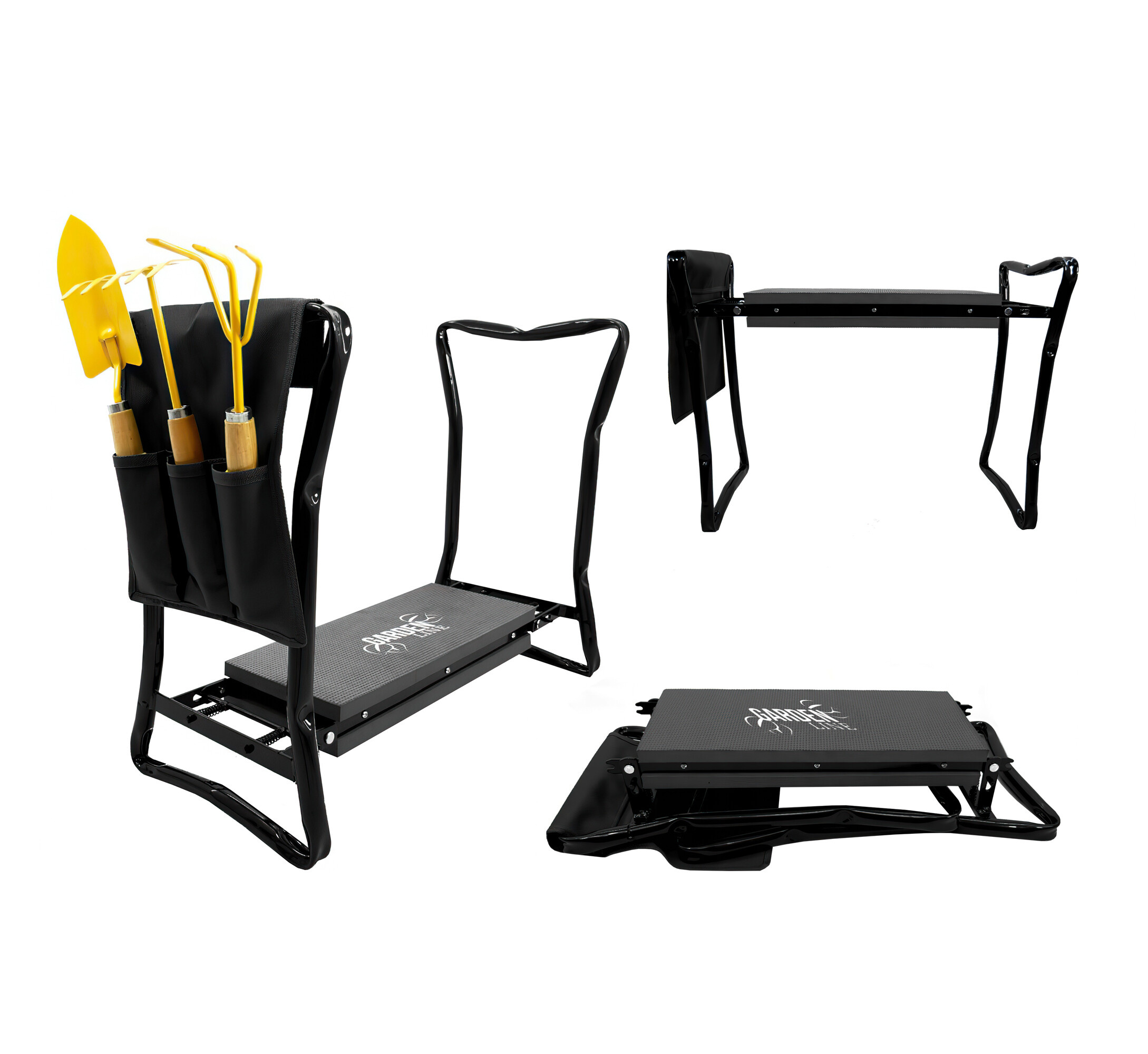 Към седалката има и чантичка за вашите градинарски инструменти или инструменти.