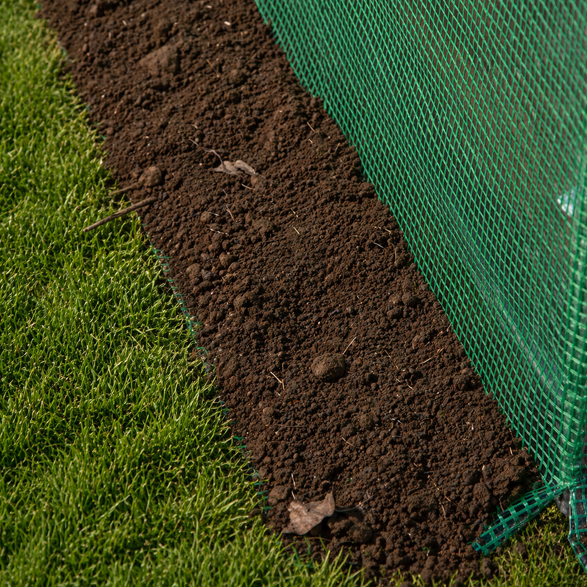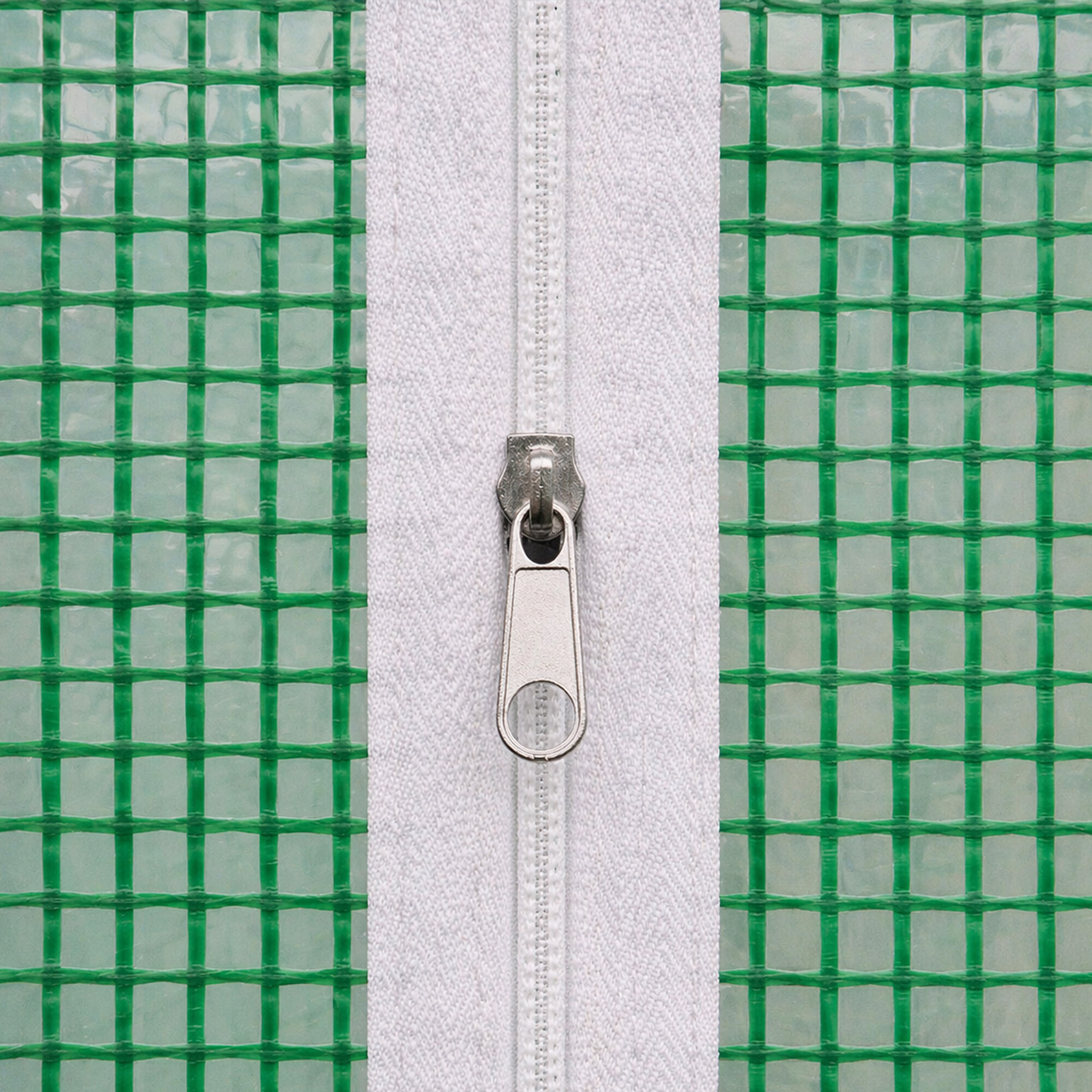 Прозрачният слой от PE фолио придава забележителни свойства на терморегулация и максимална пропускливост на светлина.Зелената мрежа от PP, вградена в структурата на фолиото, я усилва и защитава от разкъсване и механични повреди.