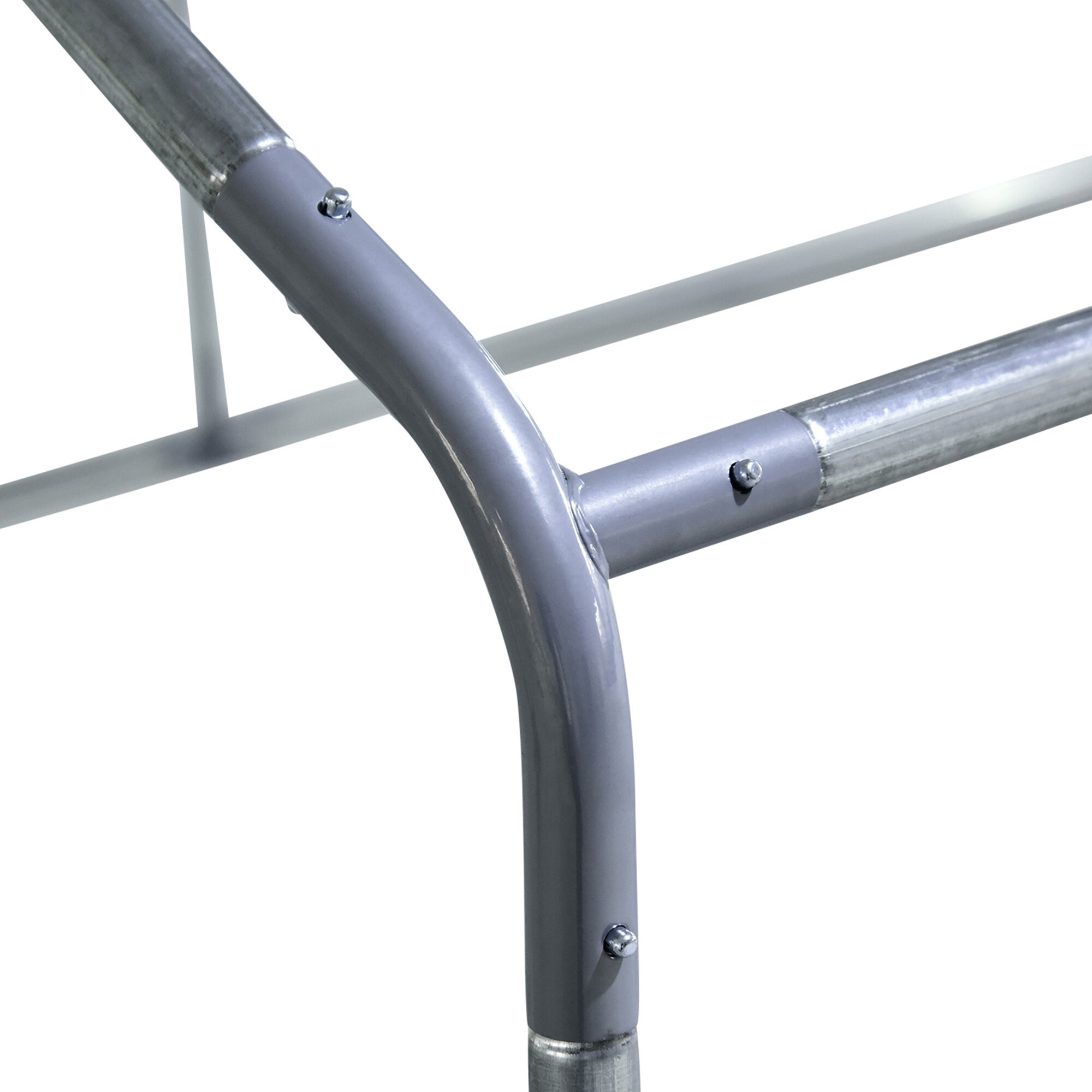 Клетка, изработена от здрава сребърно поцинкована стомана, която придава на заграждението необходимата стабилност и предотвратява нежелани инциденти, като бягства на вашата птица. Конструкцията е допълнена с поцинкована мрежа в зелен цвят и покрив, който е изработен от сив PVC плат.