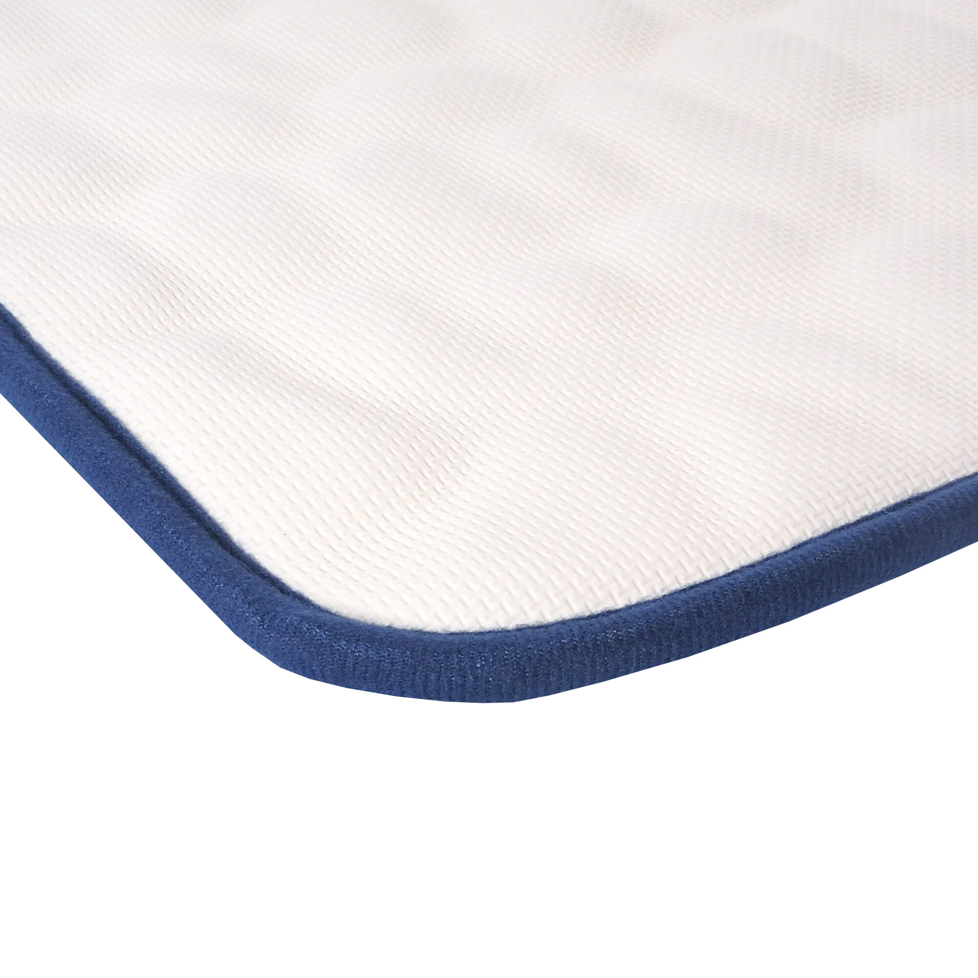 Безопасността е ключов елемент на всяка баня, затова нашата постелка е оборудвана с противоплъзгаща се долна страна от материал SBR. Този материал гарантира, че подложката остава здраво на мястото си, независимо дали подът е сух или мокър. С нашата подложка не е нужно да се притеснявате от опасни подхлъзвания и падания.
