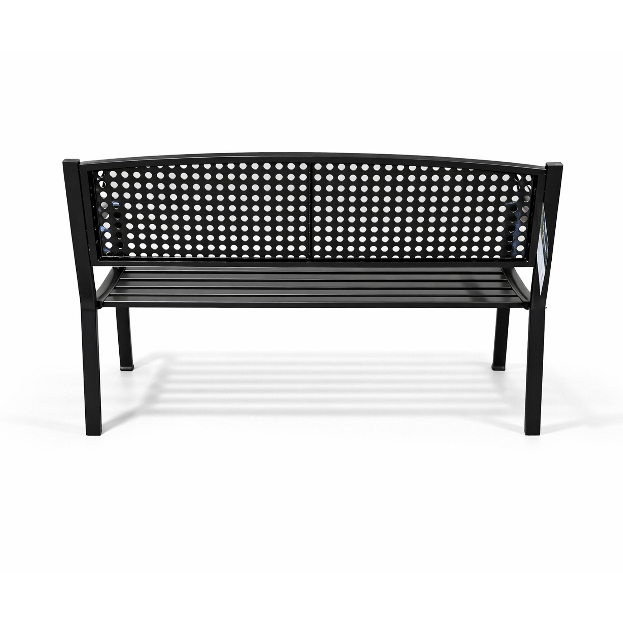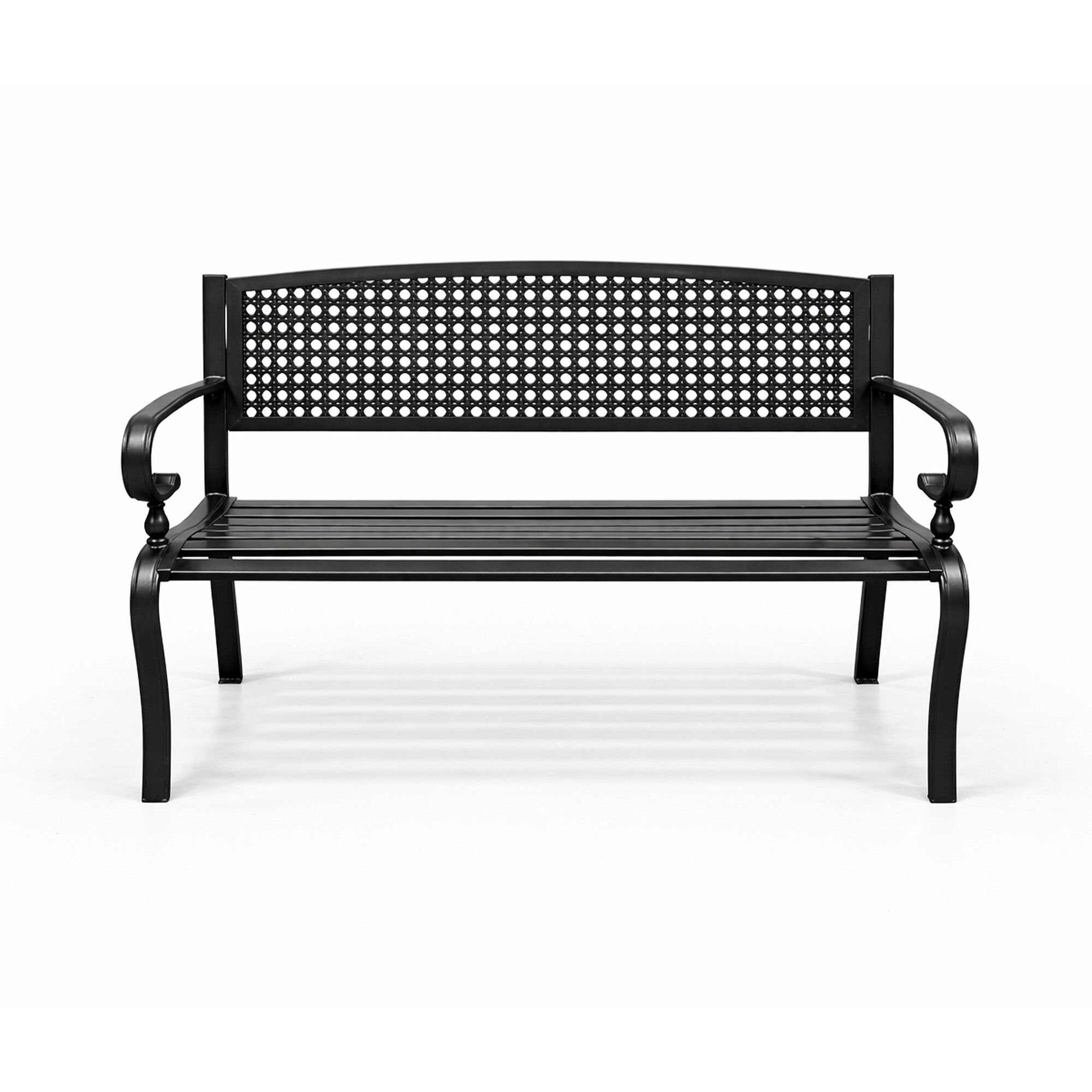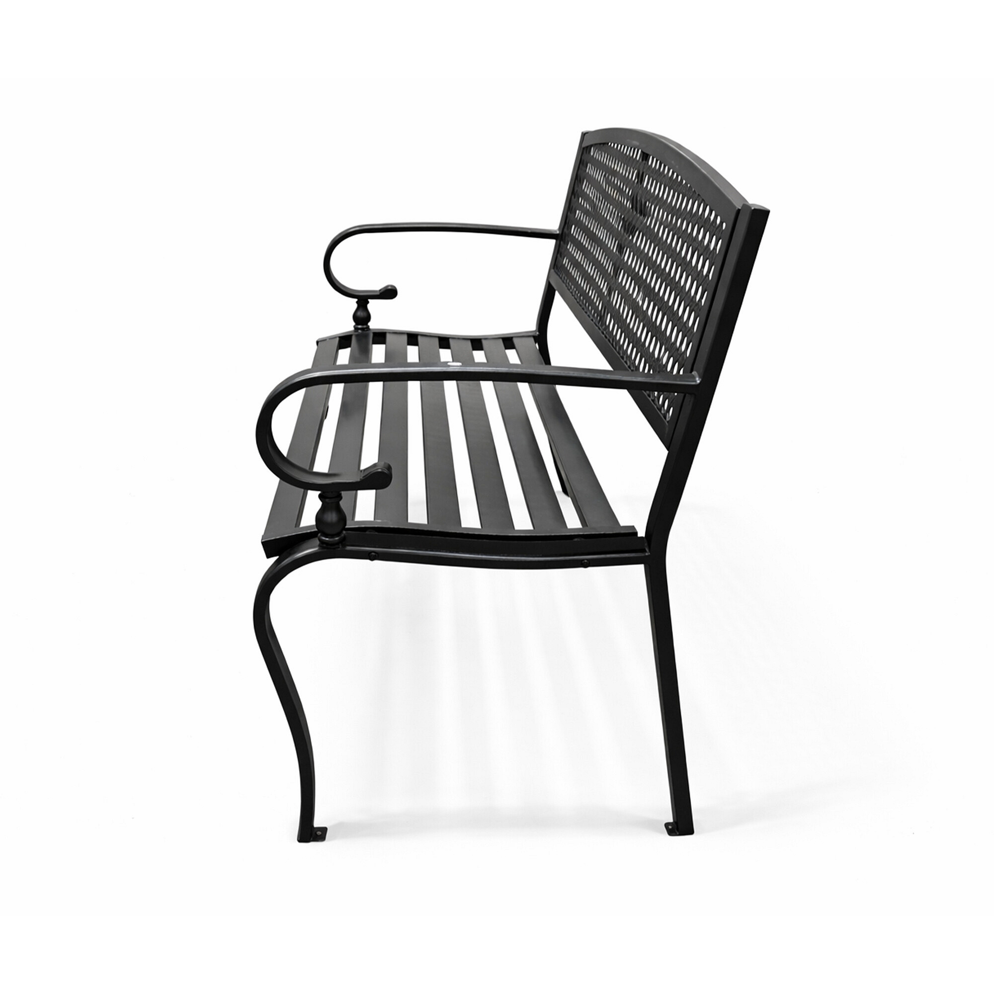 Конструкцията на градинската пейка е изработена от стомана и чугун, тези материали са устойчиви и същевременно гарантират стабилност. Конструкцията на пейката е с повърхностна обработка чрез прахово боядисване, което я прави изключително устойчива на атмосферни влияния и с дълъг живот.