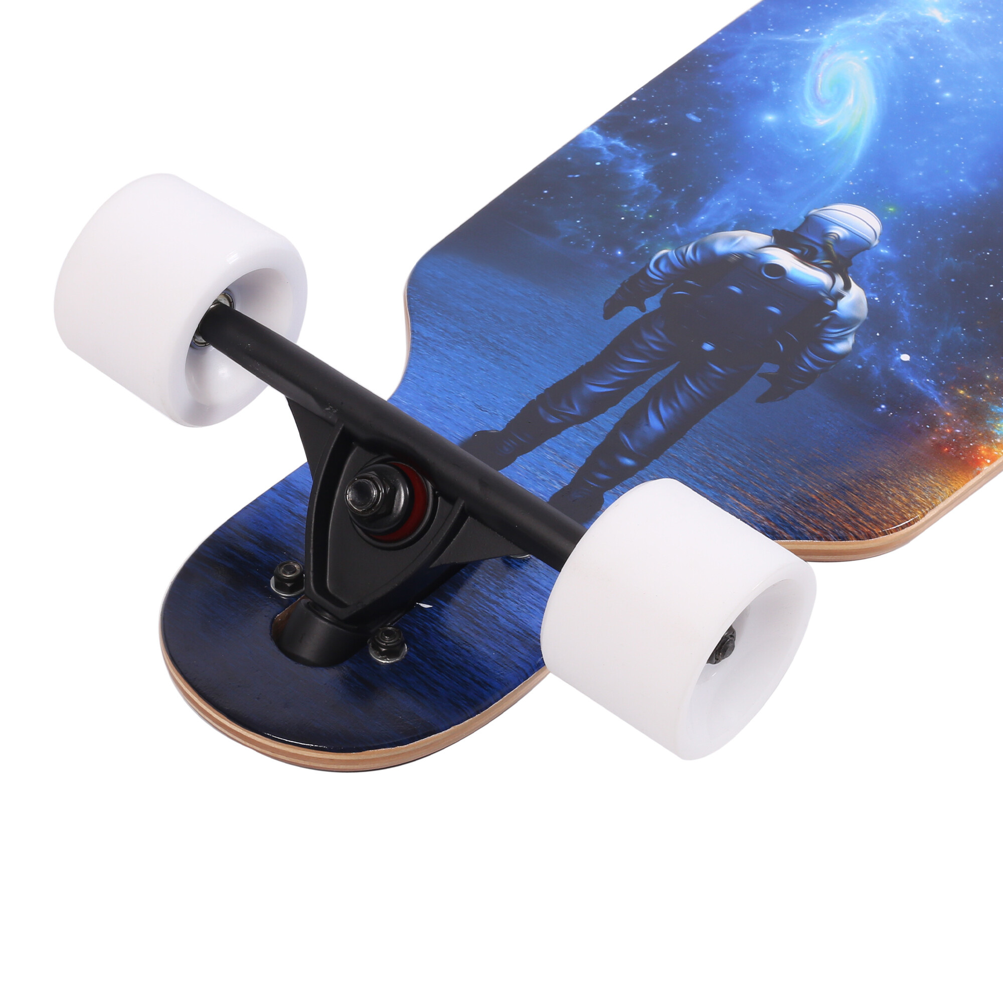 Колелата с диаметър 51 мм и ширина 70 мм са проектирани така, че да осигурят оптимален баланс между скорост и стабилност. Твърдостта на колелата 95A гарантира, че лонгбордът ще се държи отлично на различни повърхности, независимо дали карате по гладък асфалт или по-груб терен.