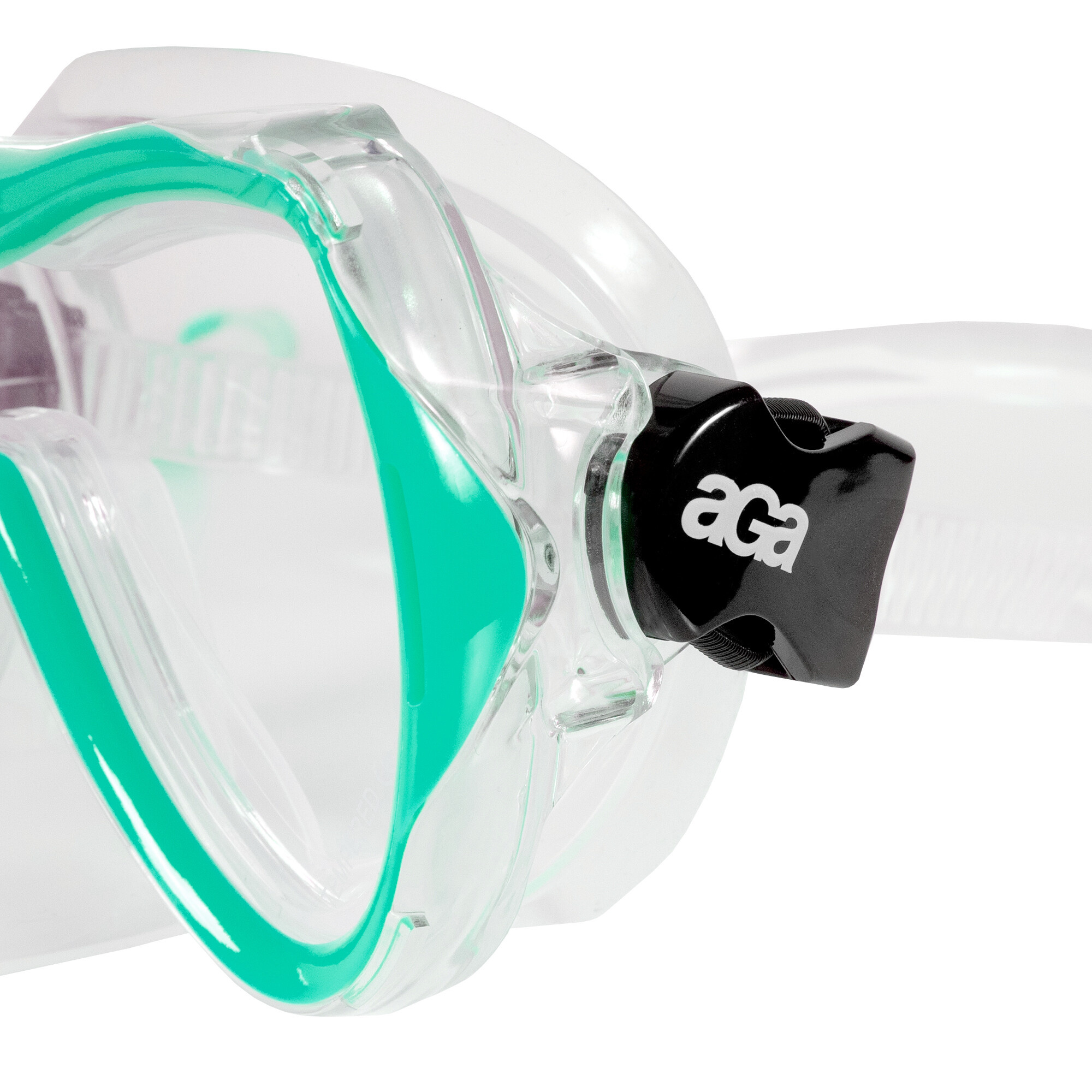 За правилно гмуркане ще оцените маската за гмуркане и шнорхела Aga. Не й липсва и двуобективното оформяне. Благодарение на своя размер и цвят, тя е изработена както за мъже, така и за жени. Стъклата няма да оцветяват света по никакъв начин, тъй като са прозрачни.