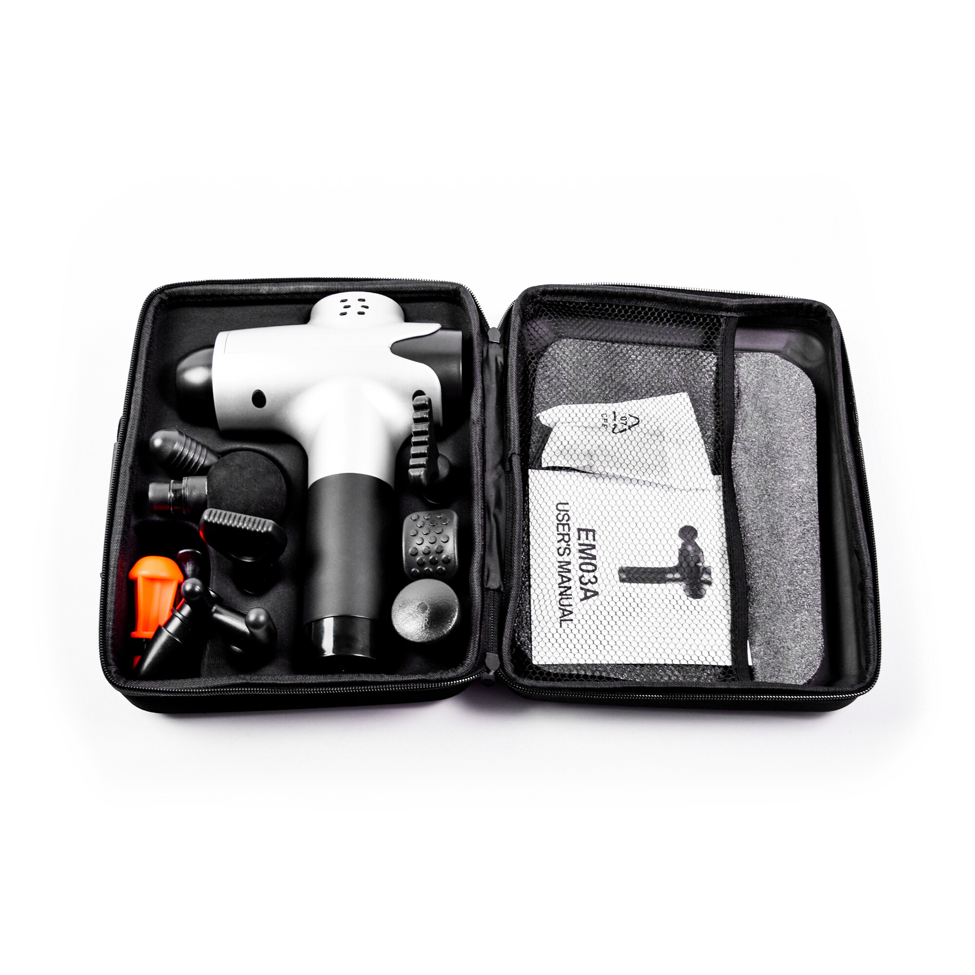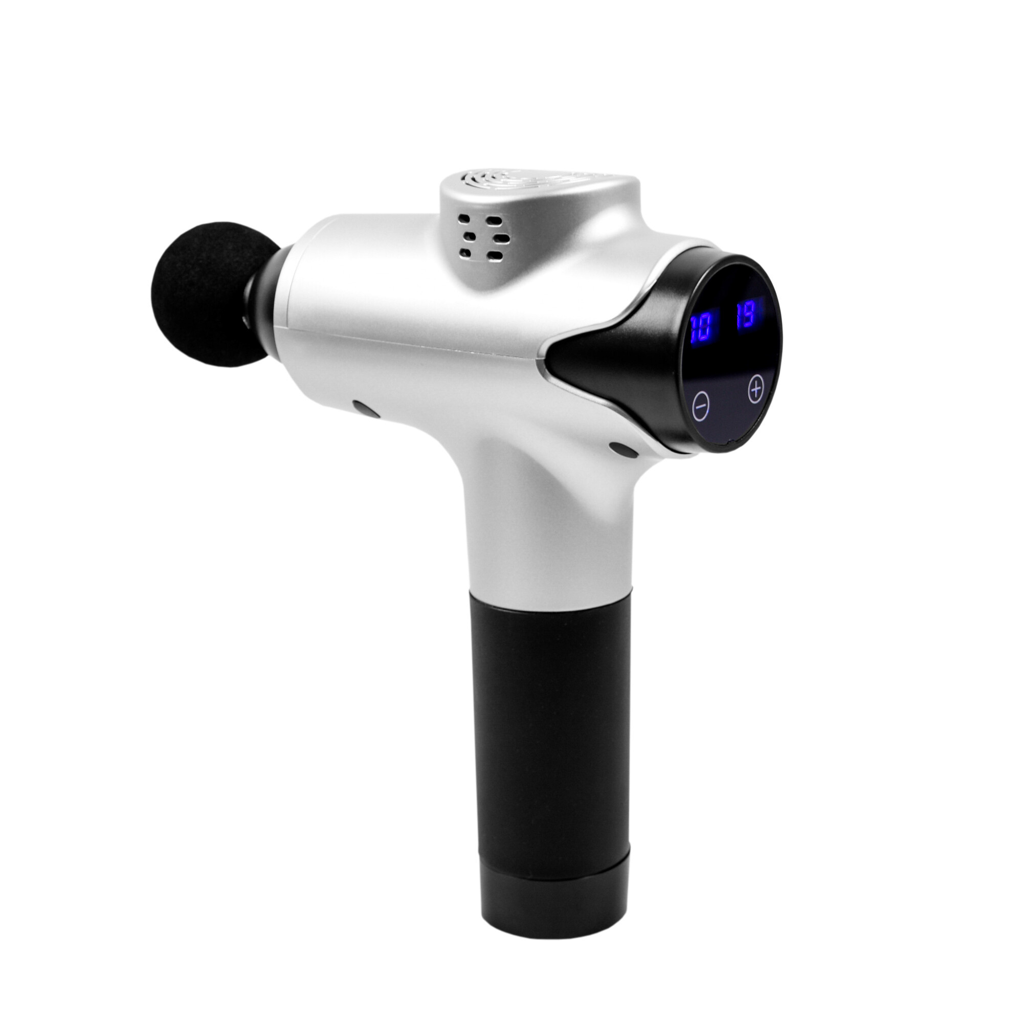 Пистолетът ви предлага 20 скорости, между които можете да превключвате според текущите нужди и предлага 10 сменяеми глави, предназначени за различни мускулни групи.