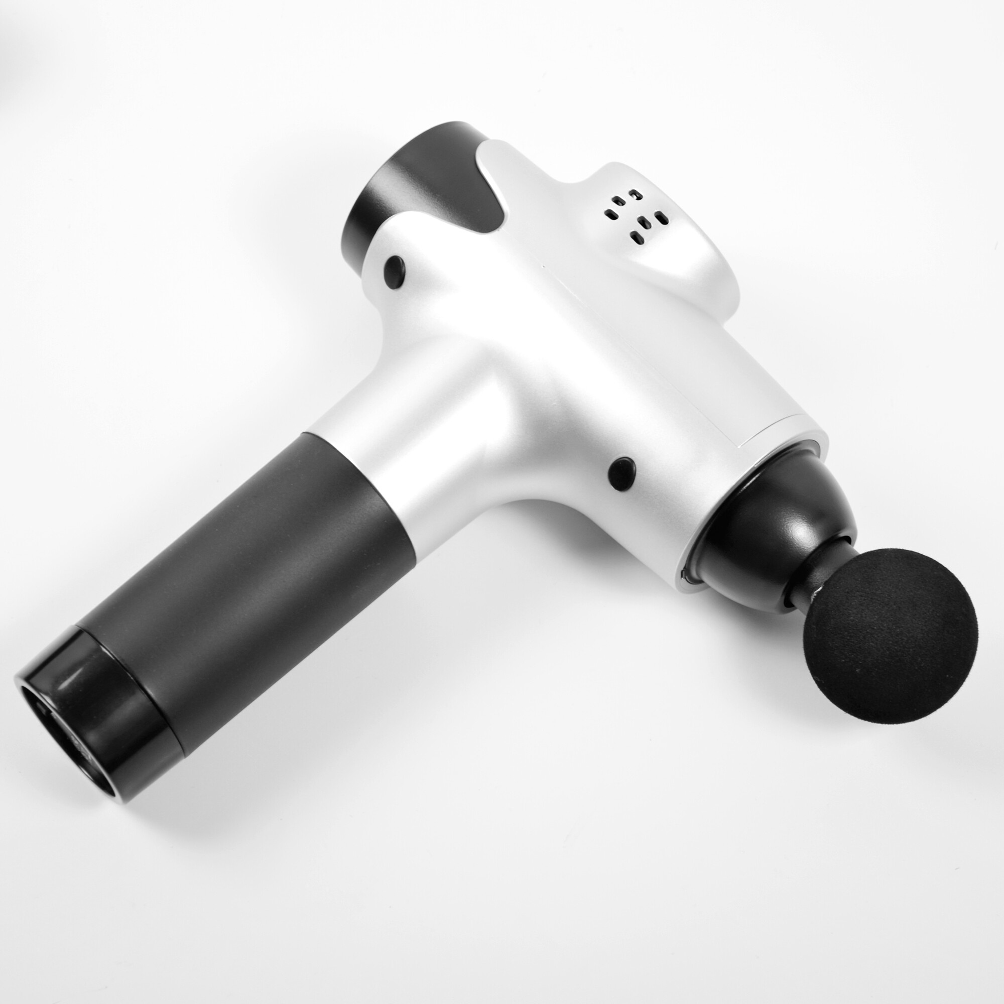 Масажният пистолет има вградена литиево-йонна батерия с капацитет 2500mAh, която издържа до 3 часа с едно зареждане, в зависимост от използваната скоростна степен.