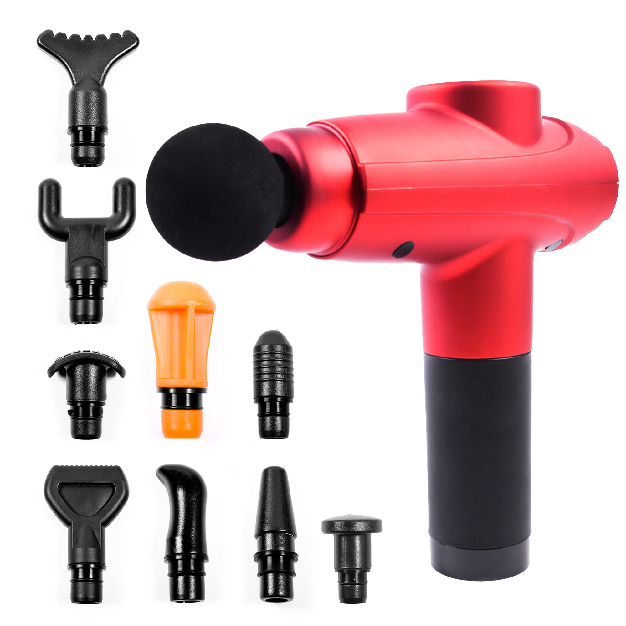Пистолетът ви предлага 20 скорости, между които можете да превключвате според текущите нужди и предлага 10 сменяеми глави, предназначени за различни мускулни групи.