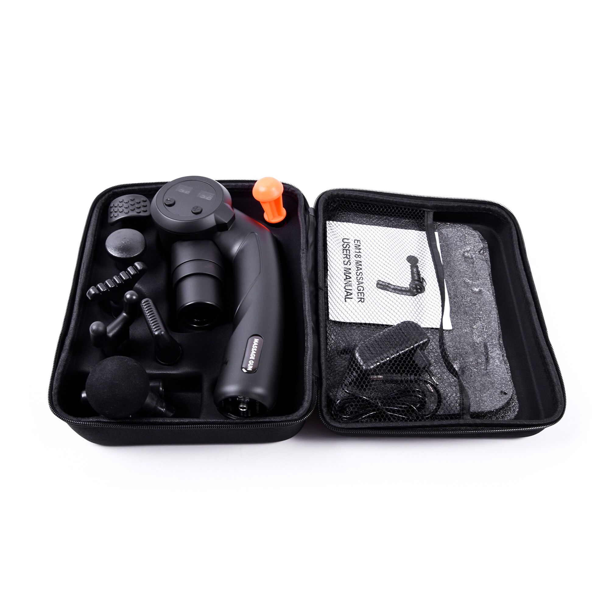 Масажният пистолет се доставя в практичен куфар за лесно пренасяне, така че може без проблем да се вземе навсякъде.