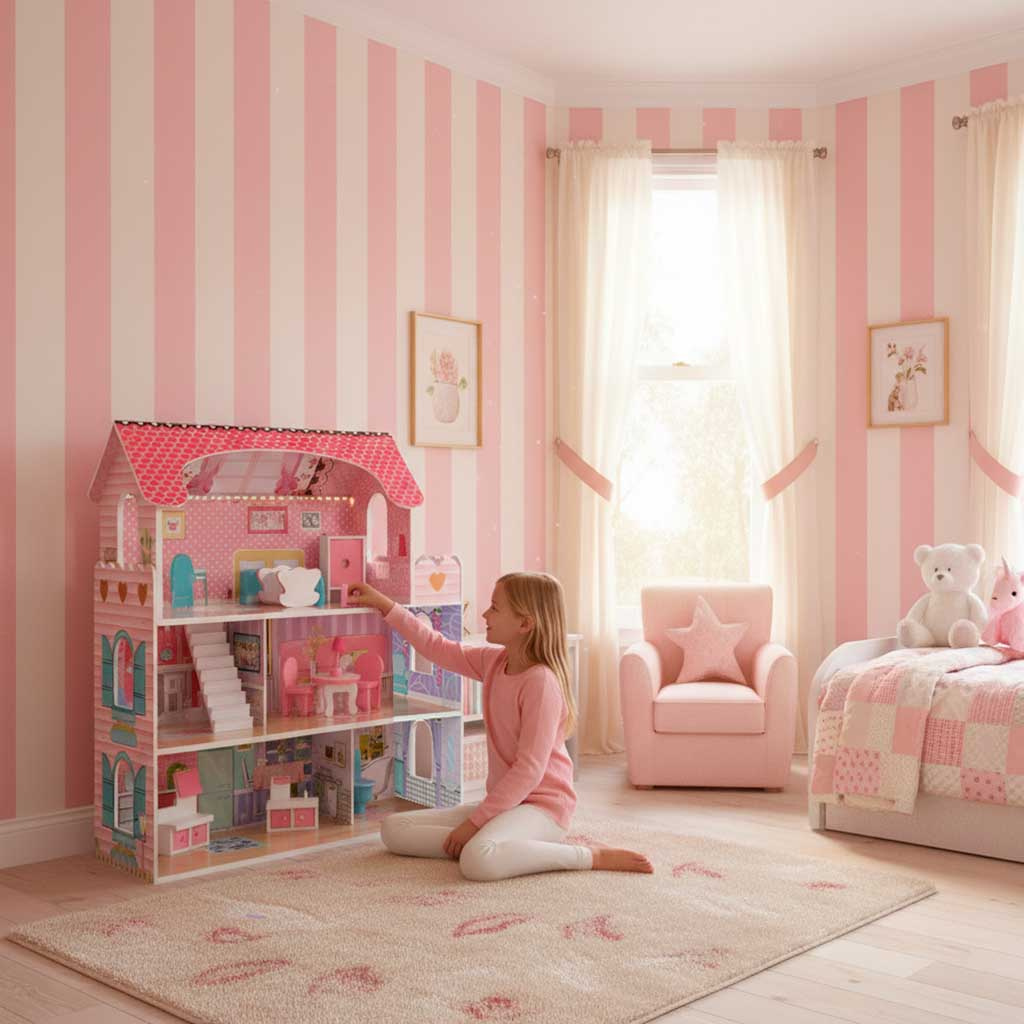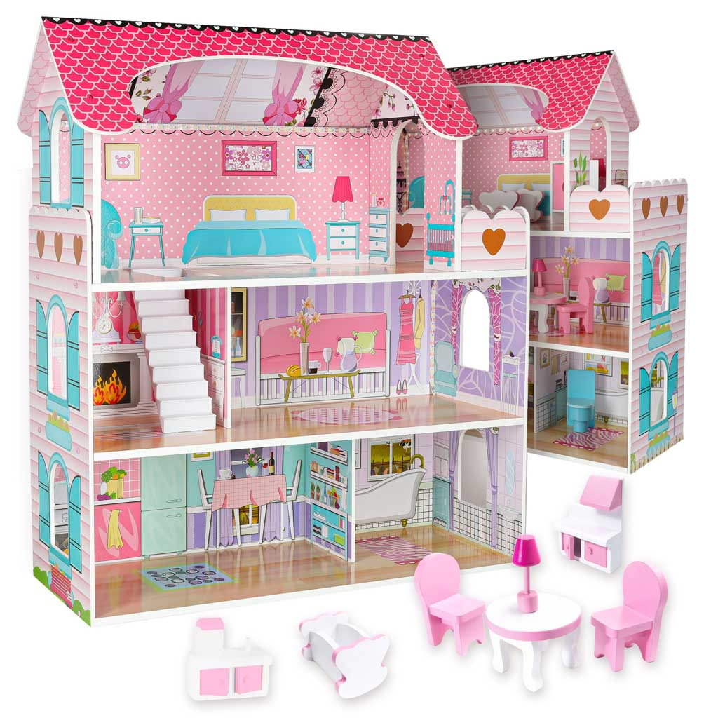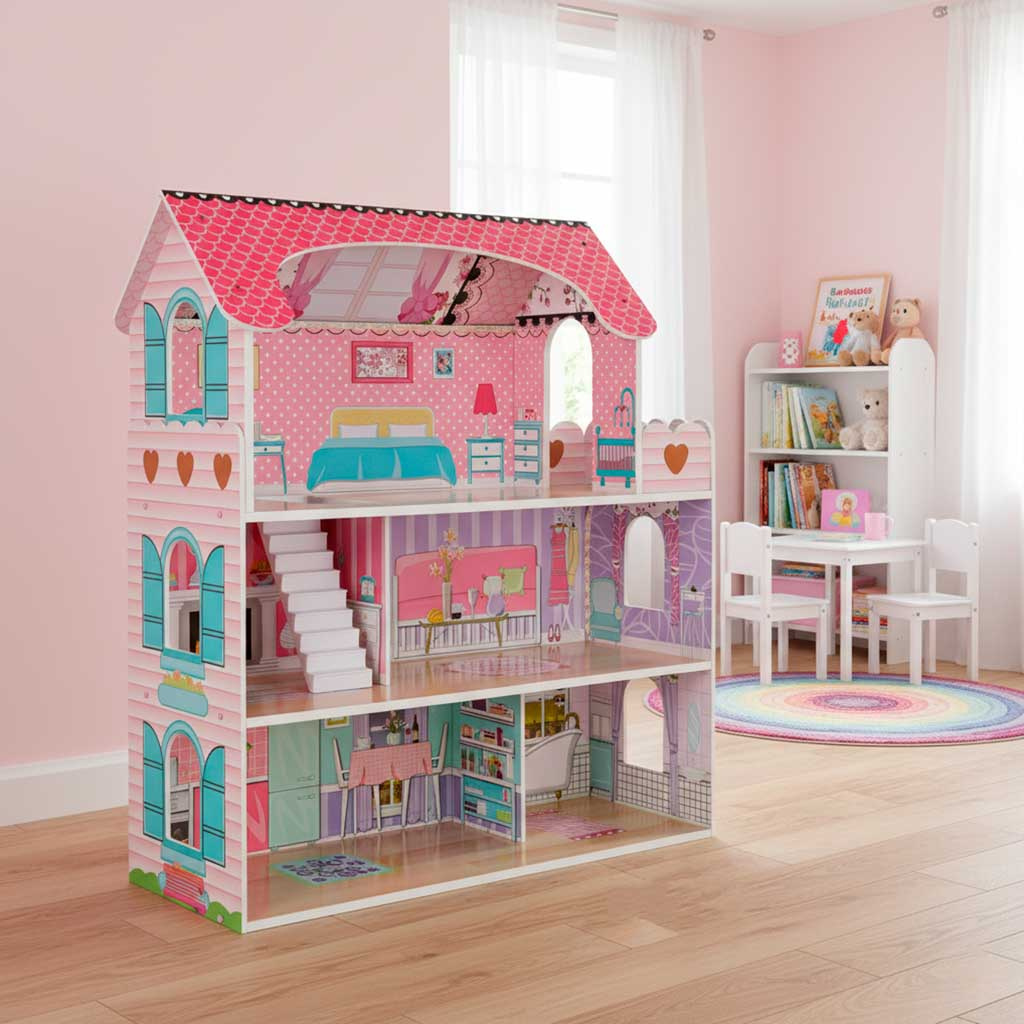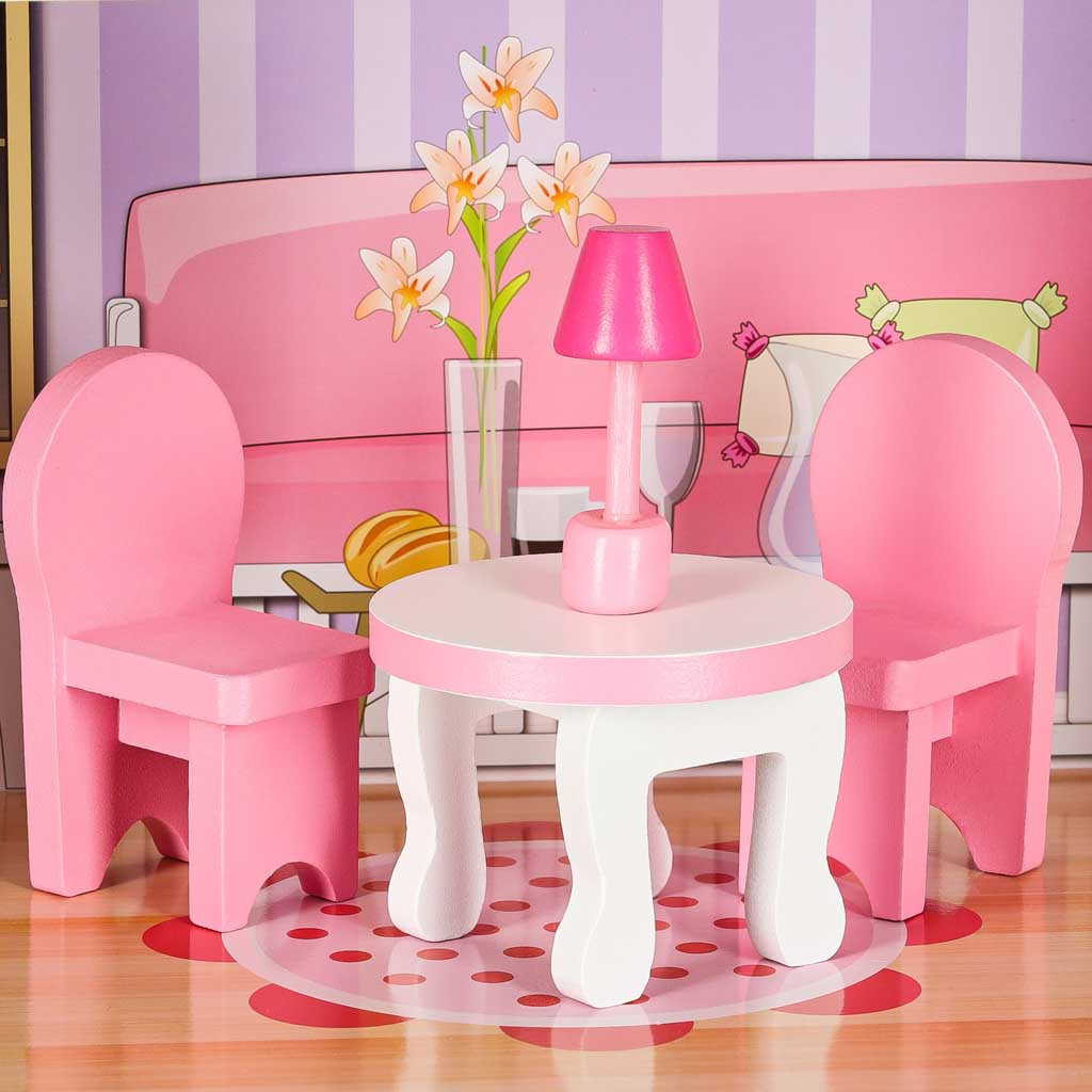- ЕСТЕТИЧЕН ВЪЗГЛЕД И ПЕРФЕКТНА КОНСТРУКЦИЯ - детайлите под формата на миниатюрни мебели и цветни графики радват и правят къщичките за кукли уникални.