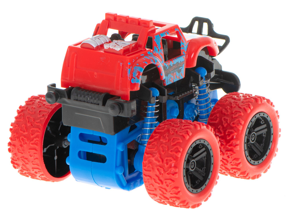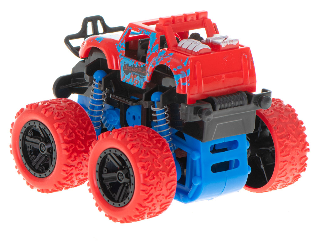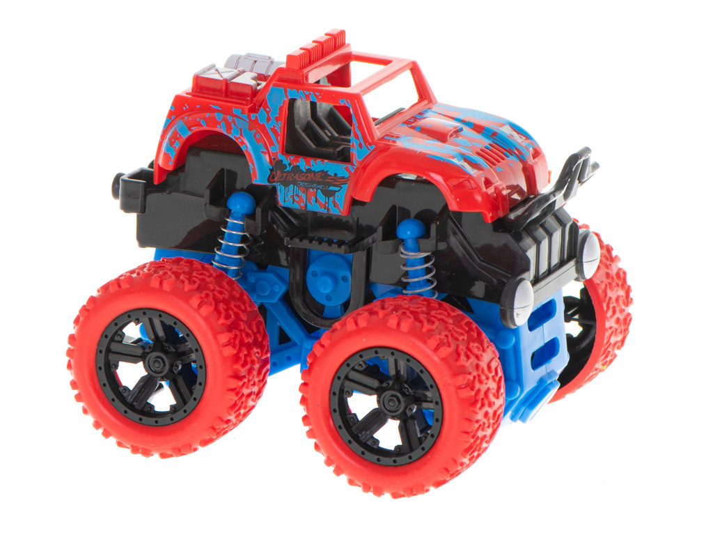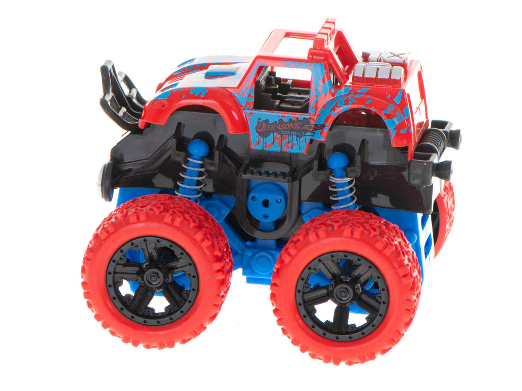 Големите гумени гуми преодоляват почти всяко препятствие. Той е оборудван с двигател, така че ускорява с едно натискане. Интересното е, че този автомобил може да се движи и на заден ход.