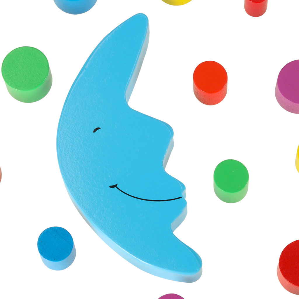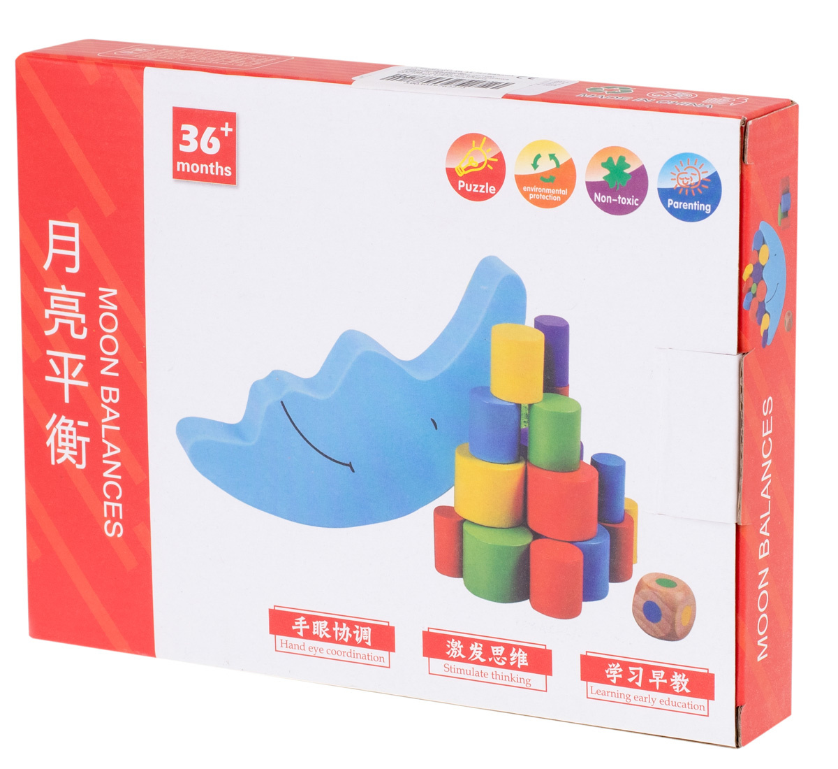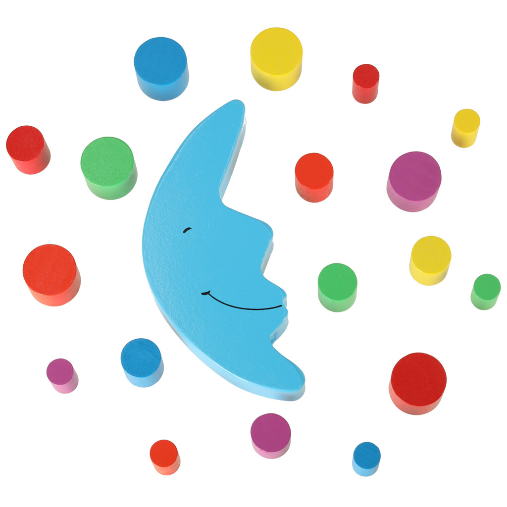 Фините двигателни умения, търпението и тактиката са правилните предпоставки за спечелване на играта Balancing Moon. Отделните елементи са изработени от масивна дървесина и са боядисани в модерни цветове.