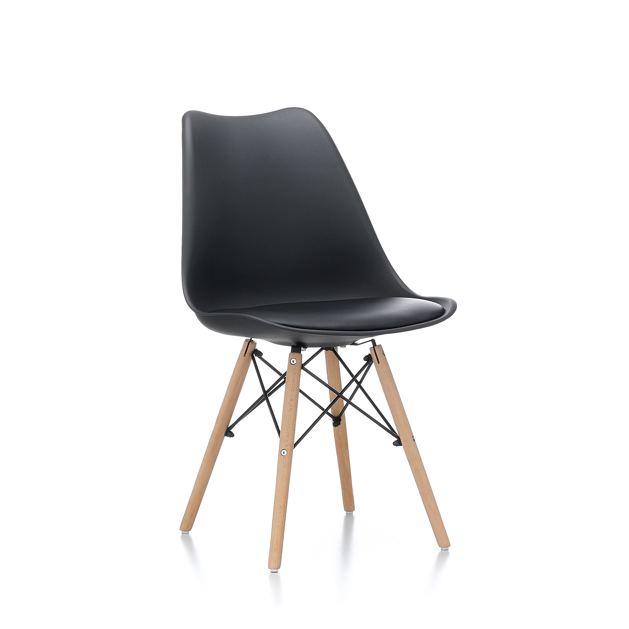 Столът е изработен от висококачествен и издръжлив полипропилен с възглавница с покритие от изкуствена кожа в комбинация с основа от букова дървесина.