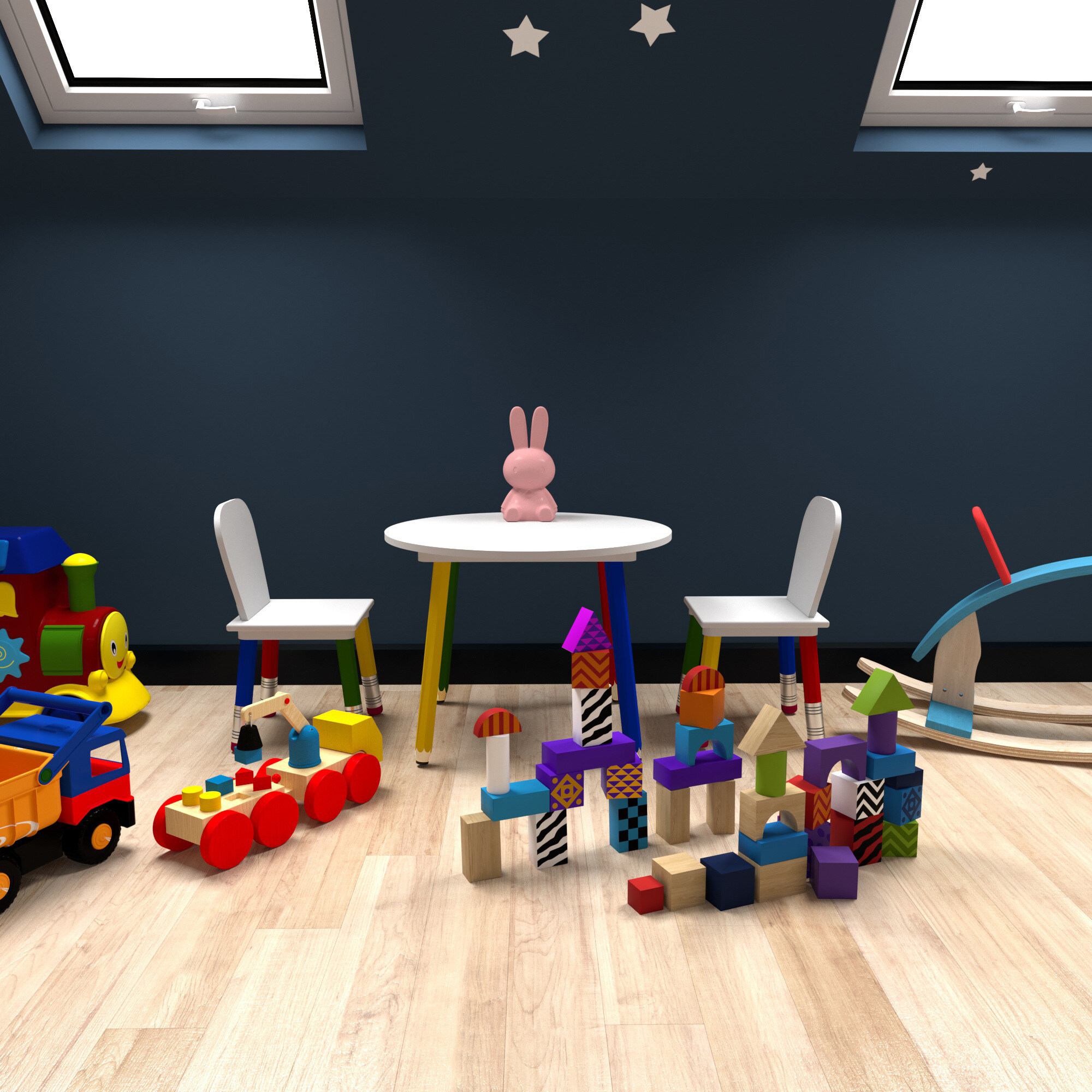Този комплект е идеалното място за игра, рисуване, закуска или за сядане с приятели.