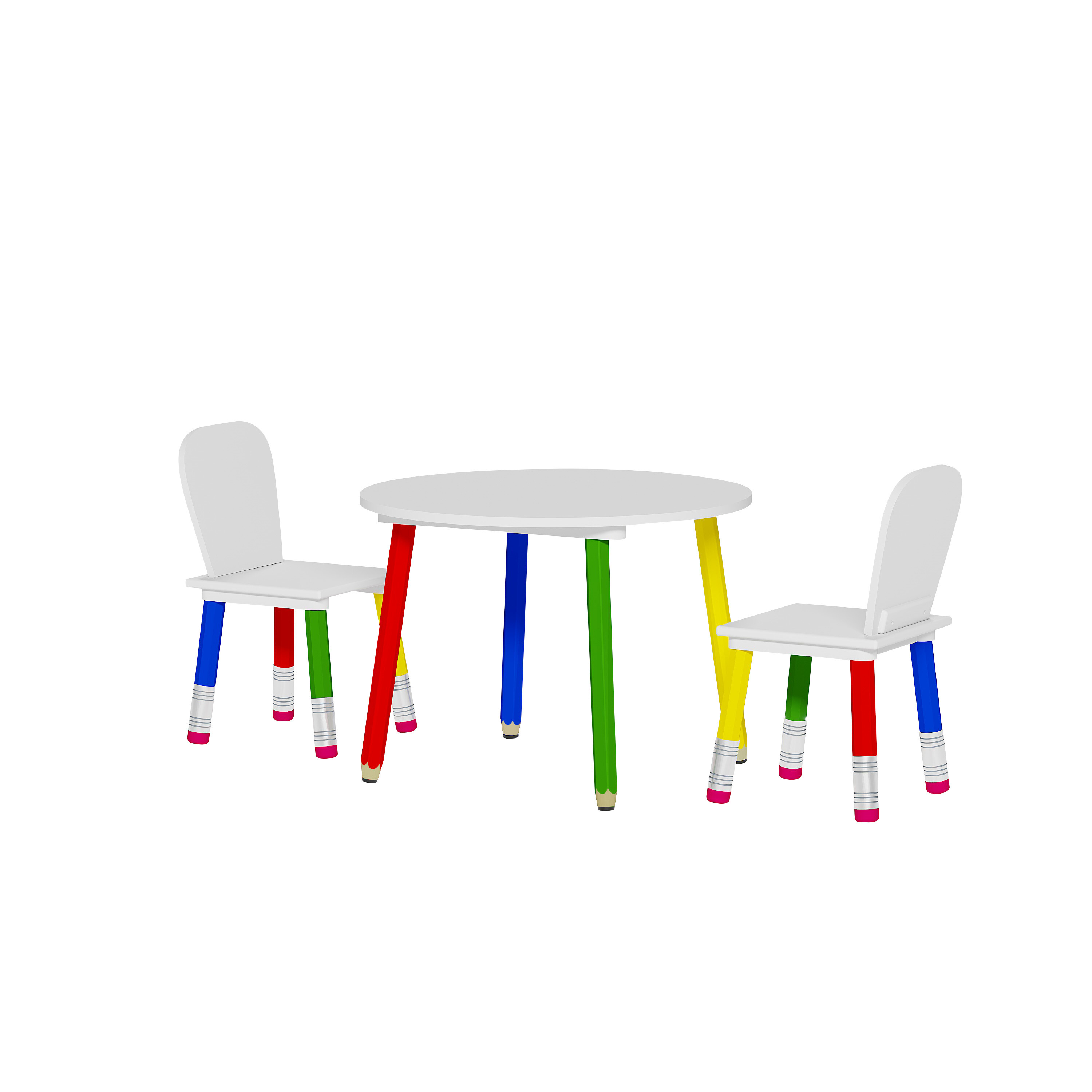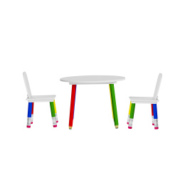 Вземете на децата си този детски цветен комплект за хранене с масичка и столчета.Краката на мебелите наподобяват детски пастели.