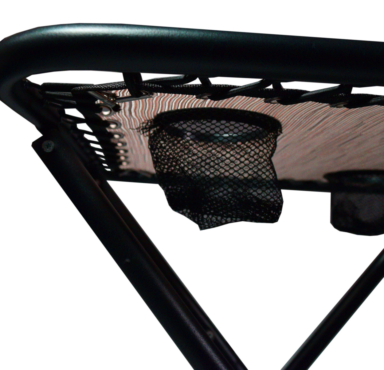 Самата повърхност на масата, с височина 50 см, е оборудвана с две поставки за напитки.