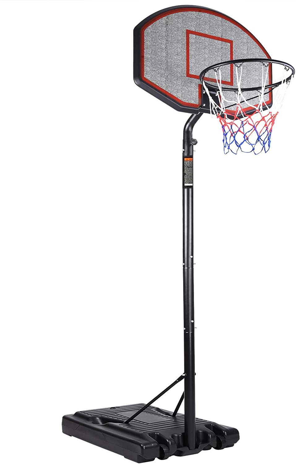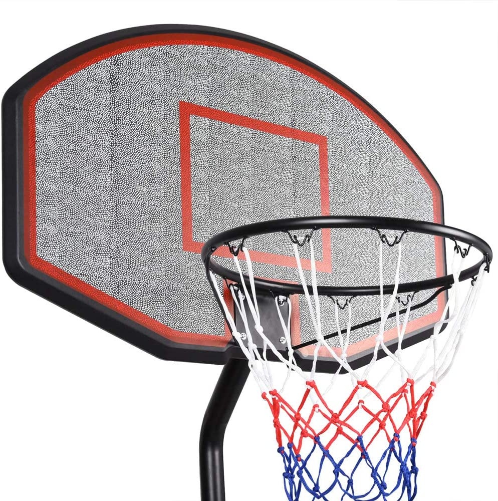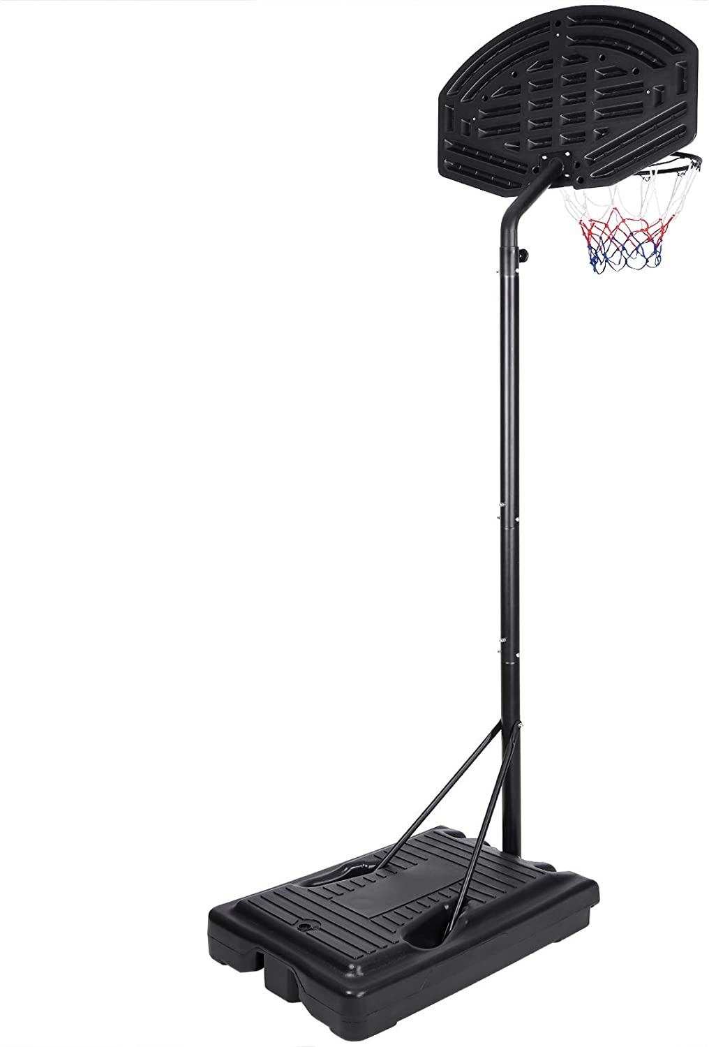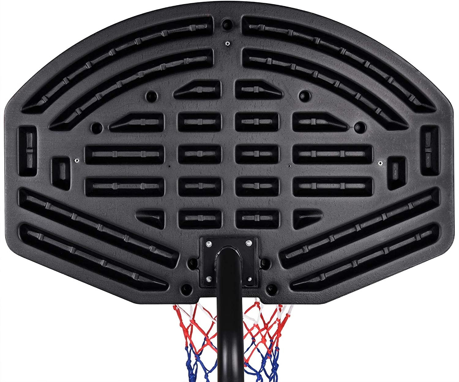 Мобилен баскетболен кош с регулируема височина, здрава пластмасова дъска и обръч с мрежа.