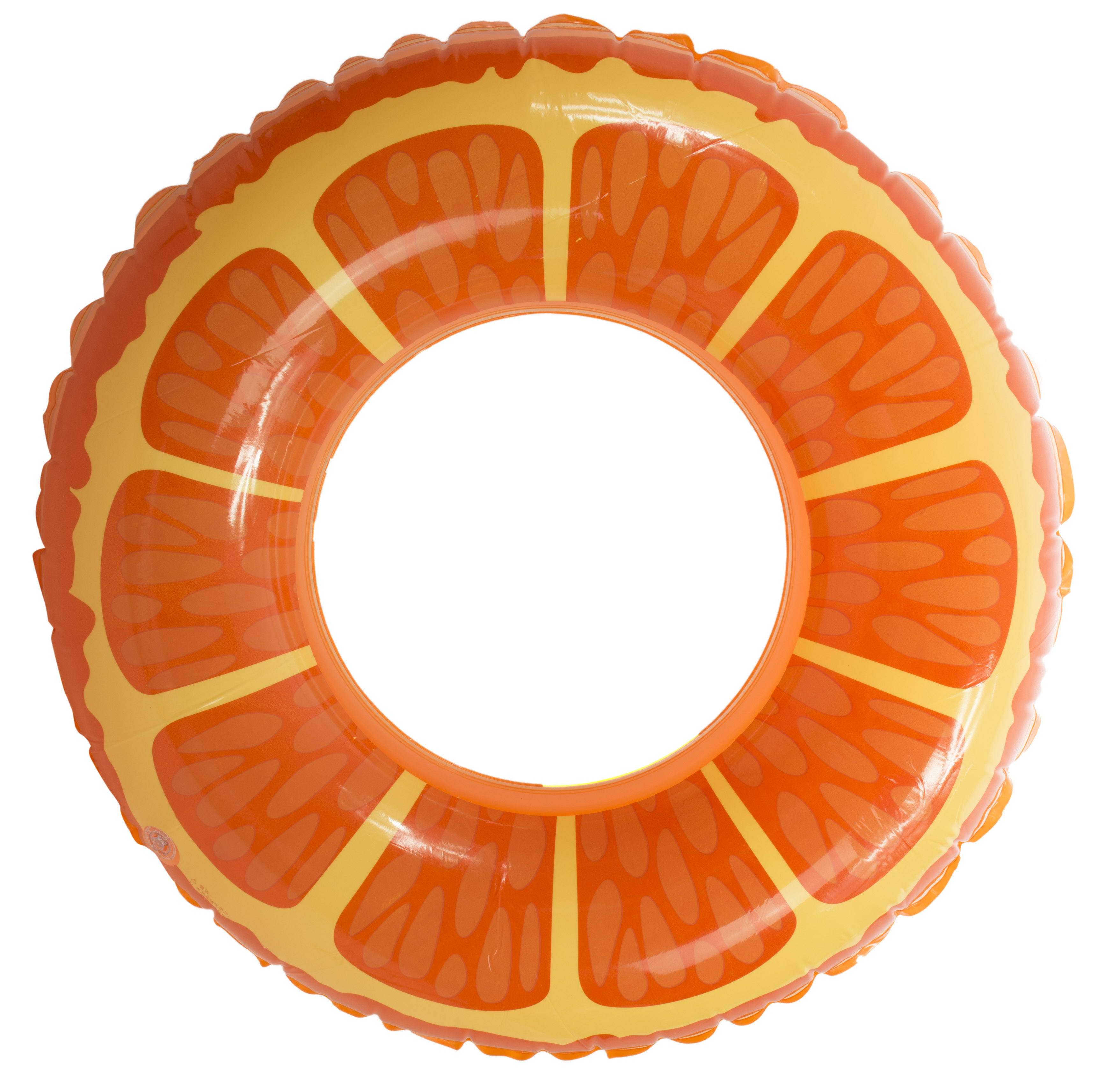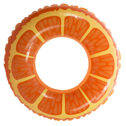 Цветен надуваем кръг с форма на оранжево, изработен от висококачествен PVC пластмаса, която гарантира дълъг живот.