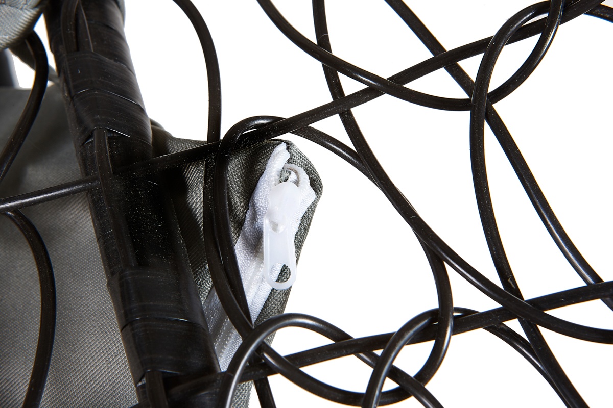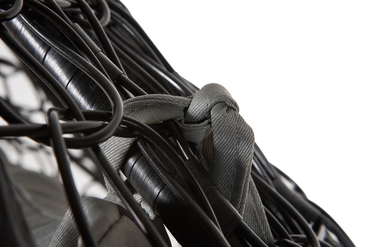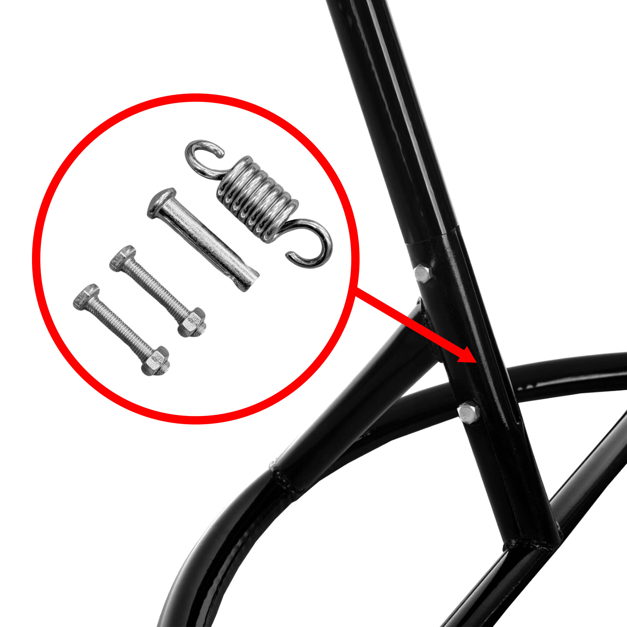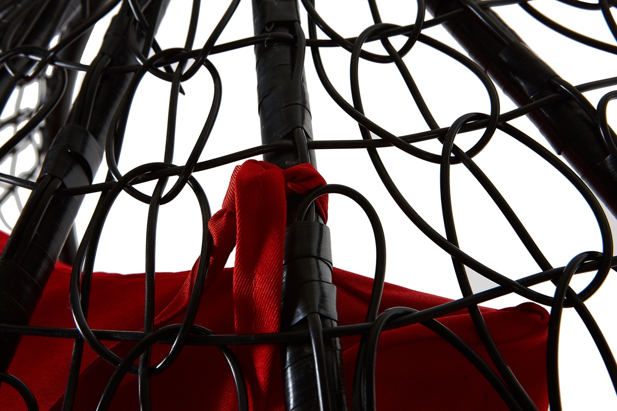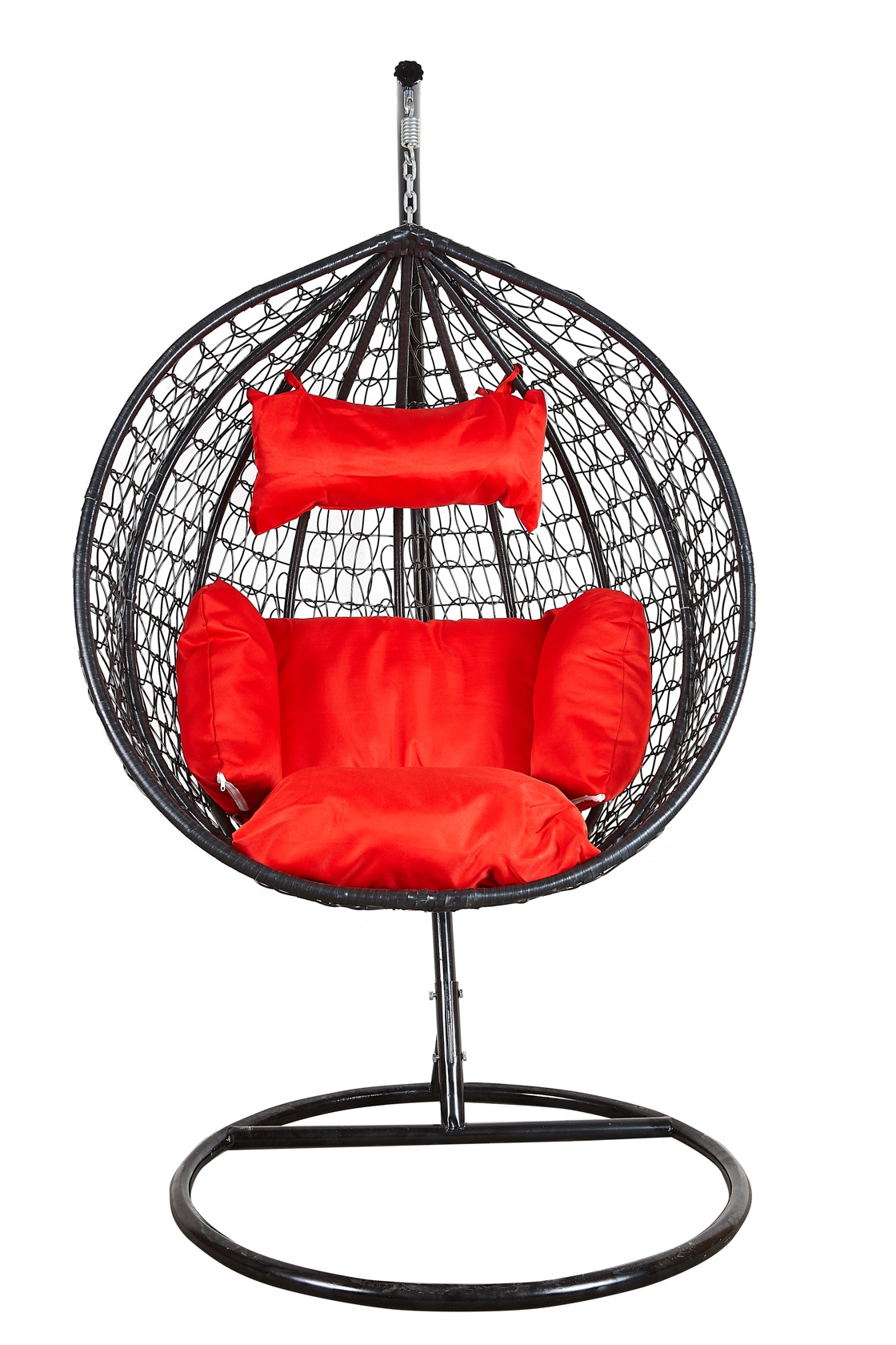 Висящ фотьойл със стабилна метална конструкция и декоративно изплетена зона за сядане от изкуствен ратан. Висящият стол включва и удобни възглавници, които са водоустойчиви.
