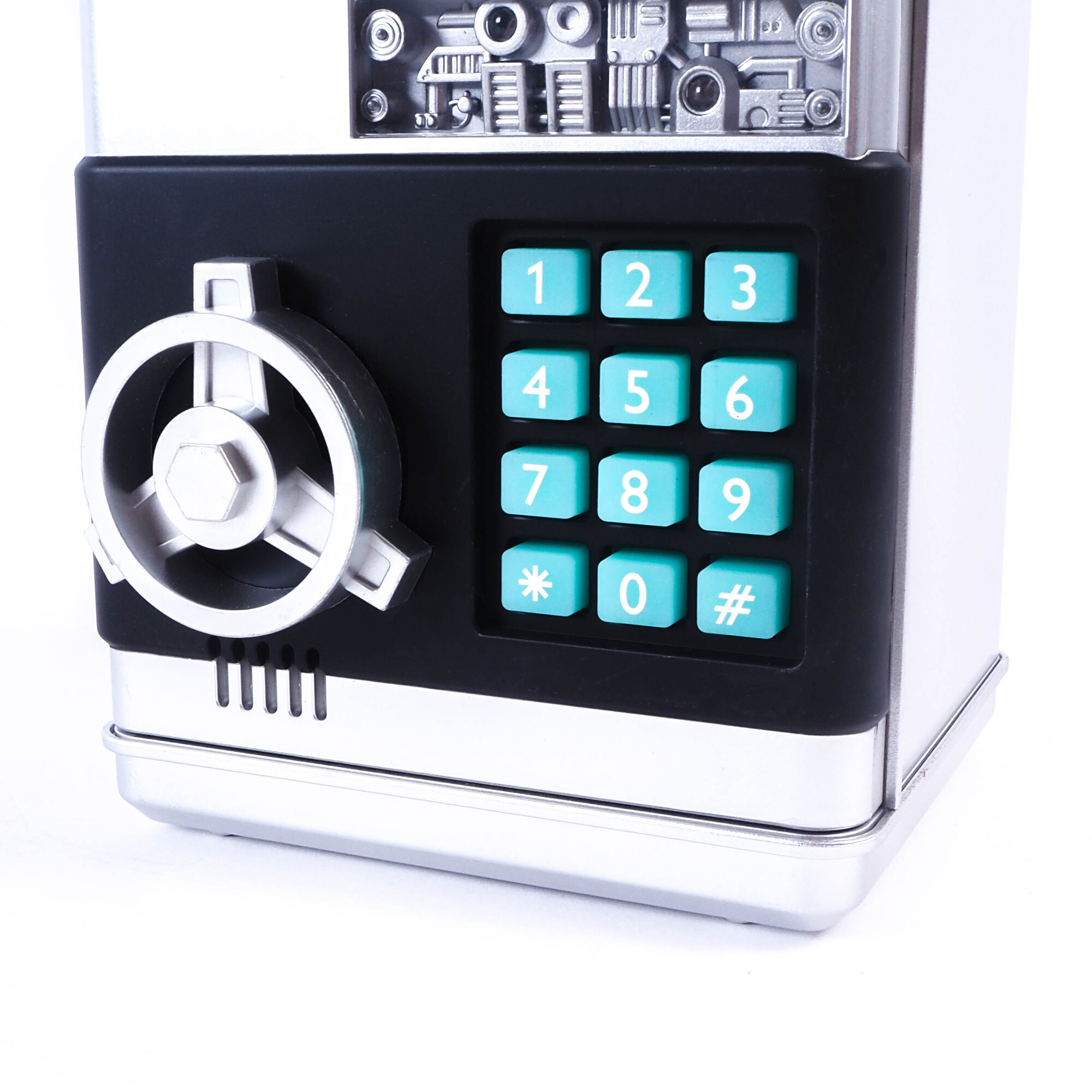 Тази касичка не е просто обикновена кутия за пари. Това е истински сейф, който се отваря след въвеждане на 4-цифрен ПИН код. Децата могат да си създадат собствена парола и да защитят спестяванията си от любопитни ръце. Освен това, след 20 секунди сейфът ще ви напомни, че вратата е отворена, така че не е нужно да се притеснявате, че детето ви ще забрави да затвори касичката.