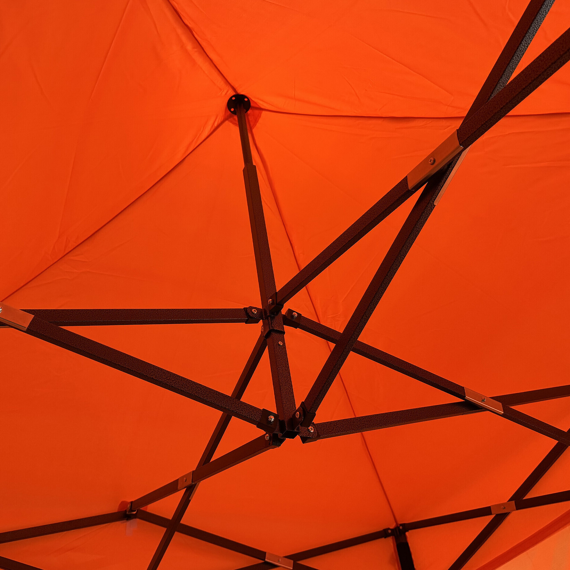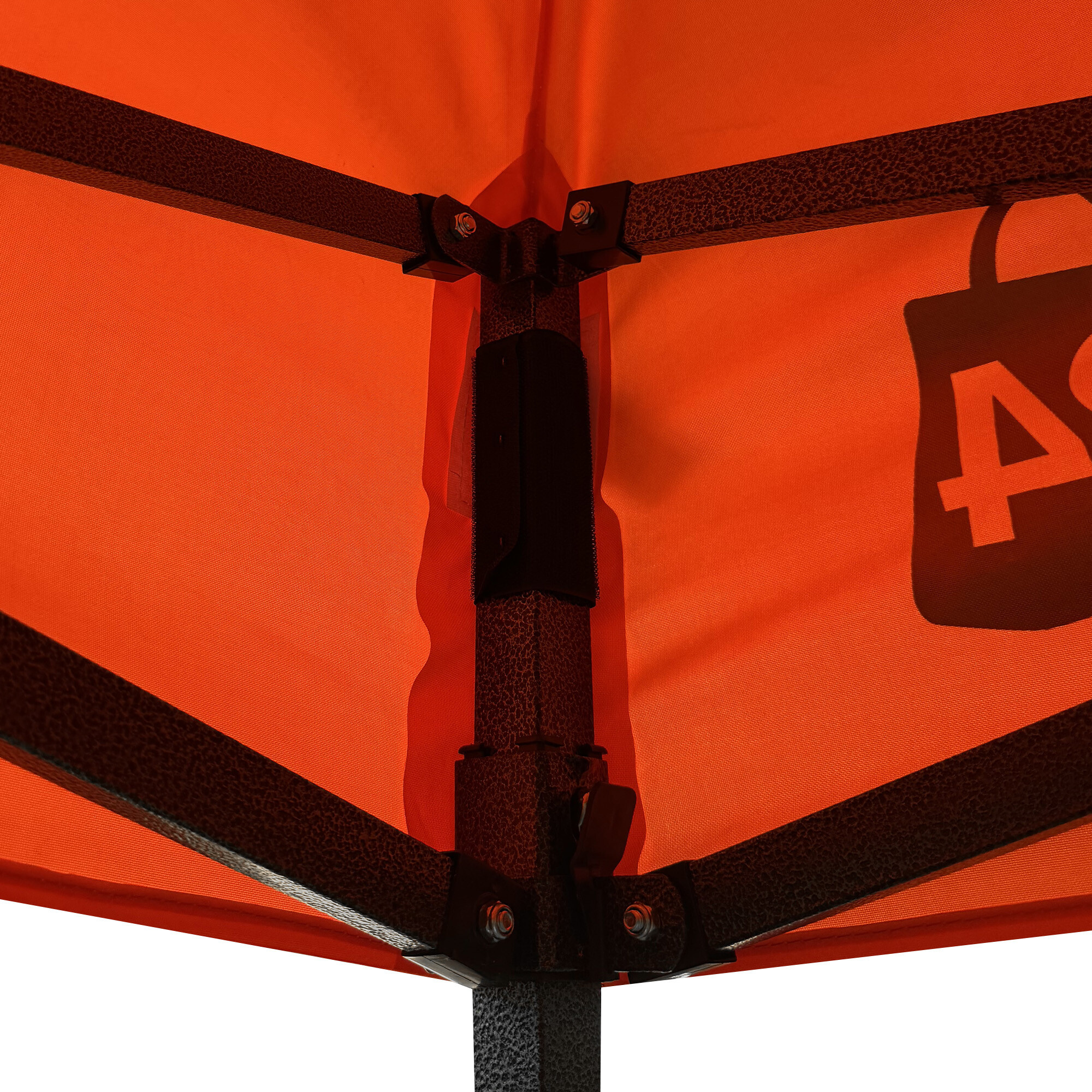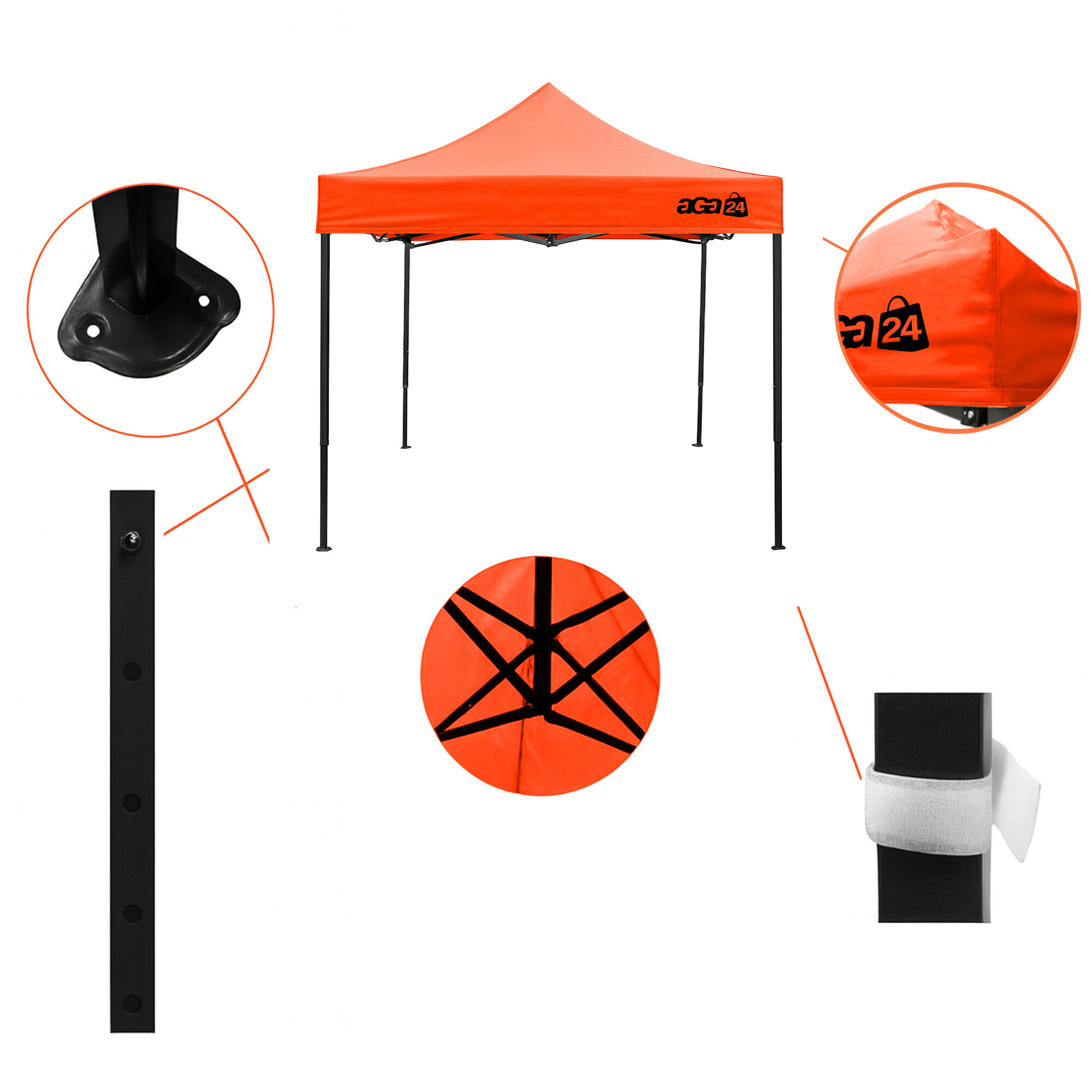 Конструкцията се състои от стоманена рамка с ножичен механизъм, който е повърхностно защитен с прахово покритие срещу корозия. В сравнение с обикновените сгъваеми палатки, този модел има завинтени съединения, което увеличава здравината, удължава живота и улеснява евентуалния сервиз или подмяна на части. Благодарение на трите степени на регулиране, височината може да се настрои от 213 см до 290 см, така че щандът лесно да се приспособи към конкретните условия.