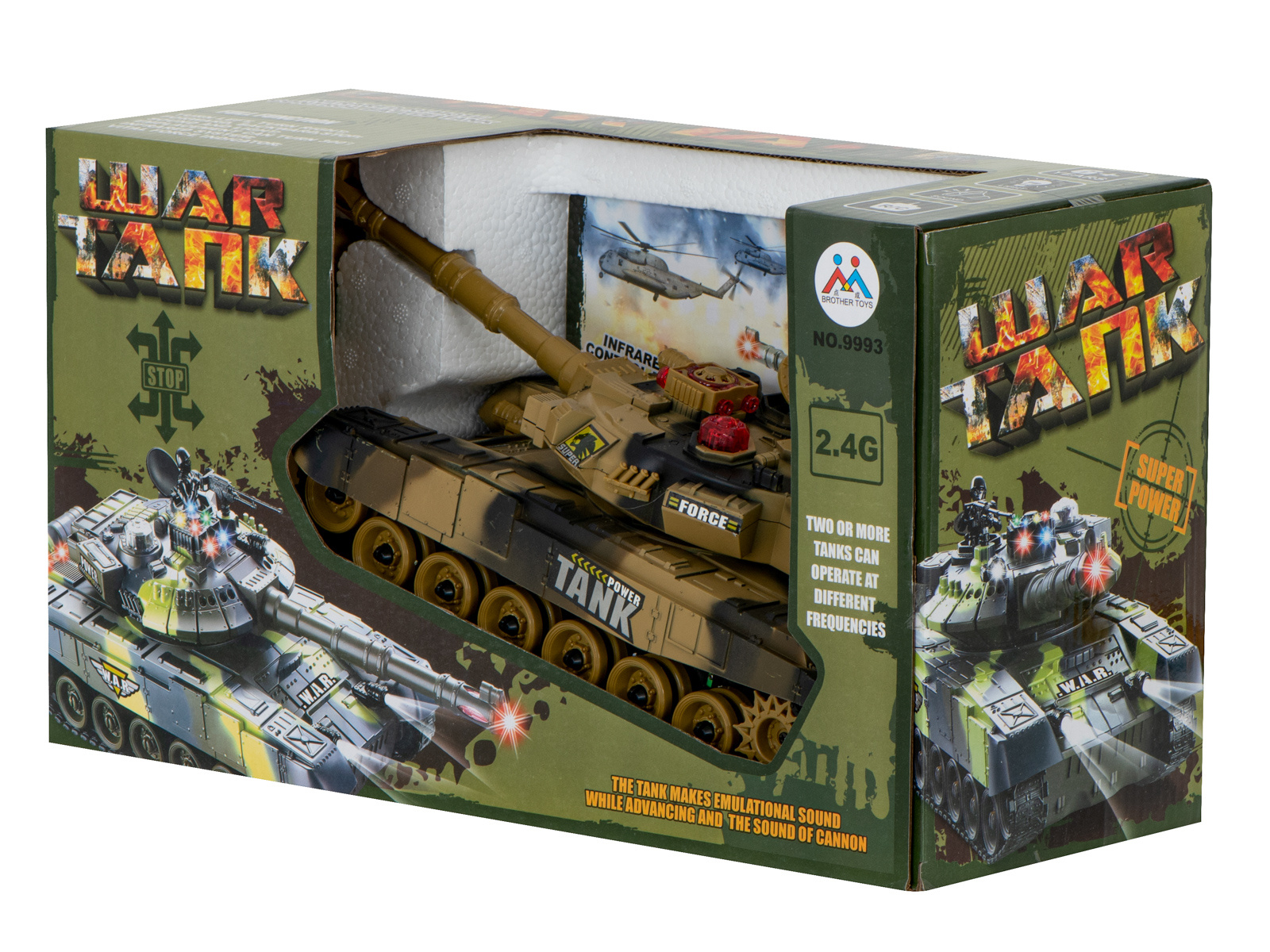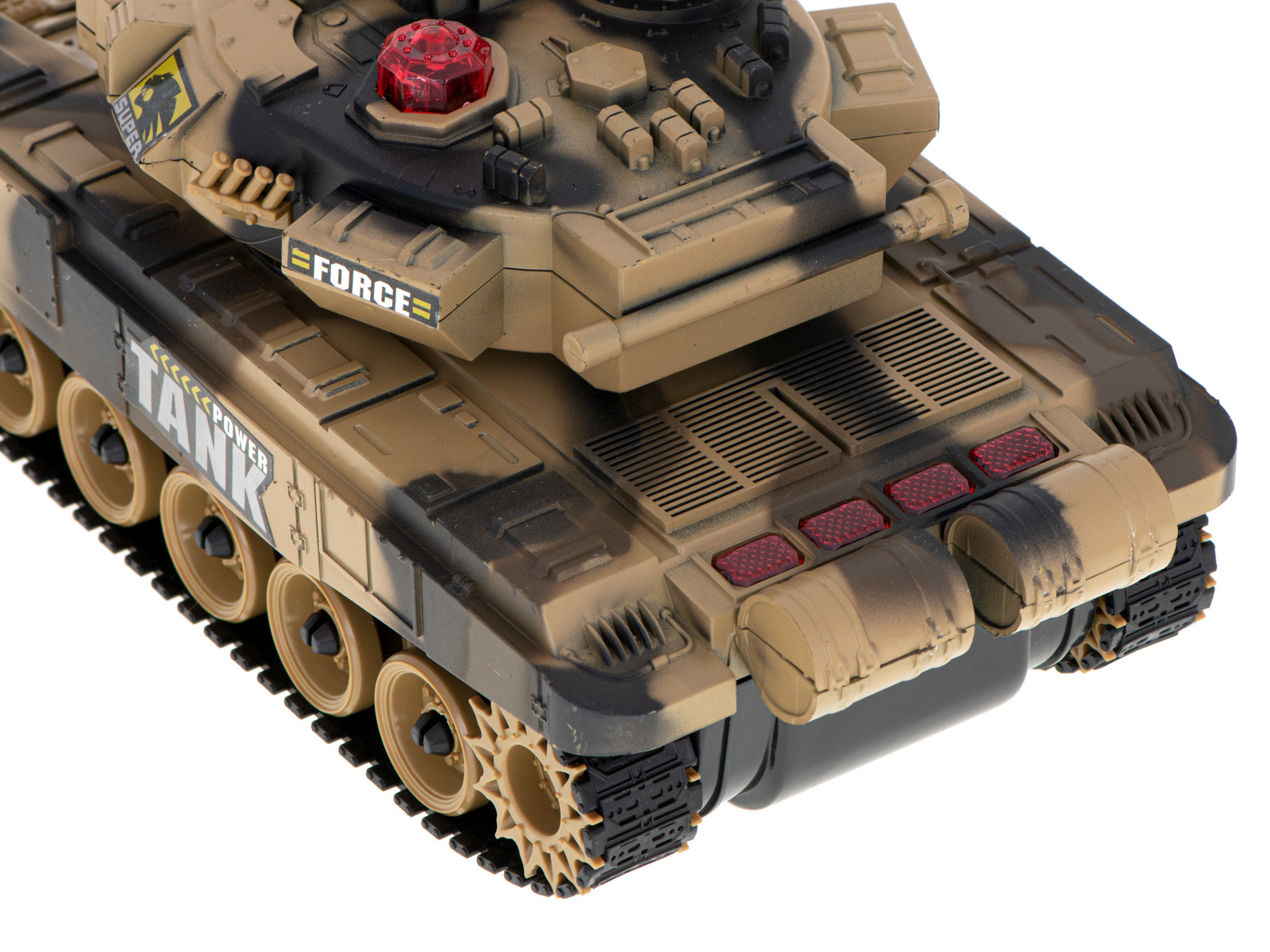 Благодарение на огромната мощност, която притежава, никое място не е непристъпно за него, а светлинните и звуковите ефекти, които перфектно имитират истински танк, стимулират въображението и засилват забавлението.
