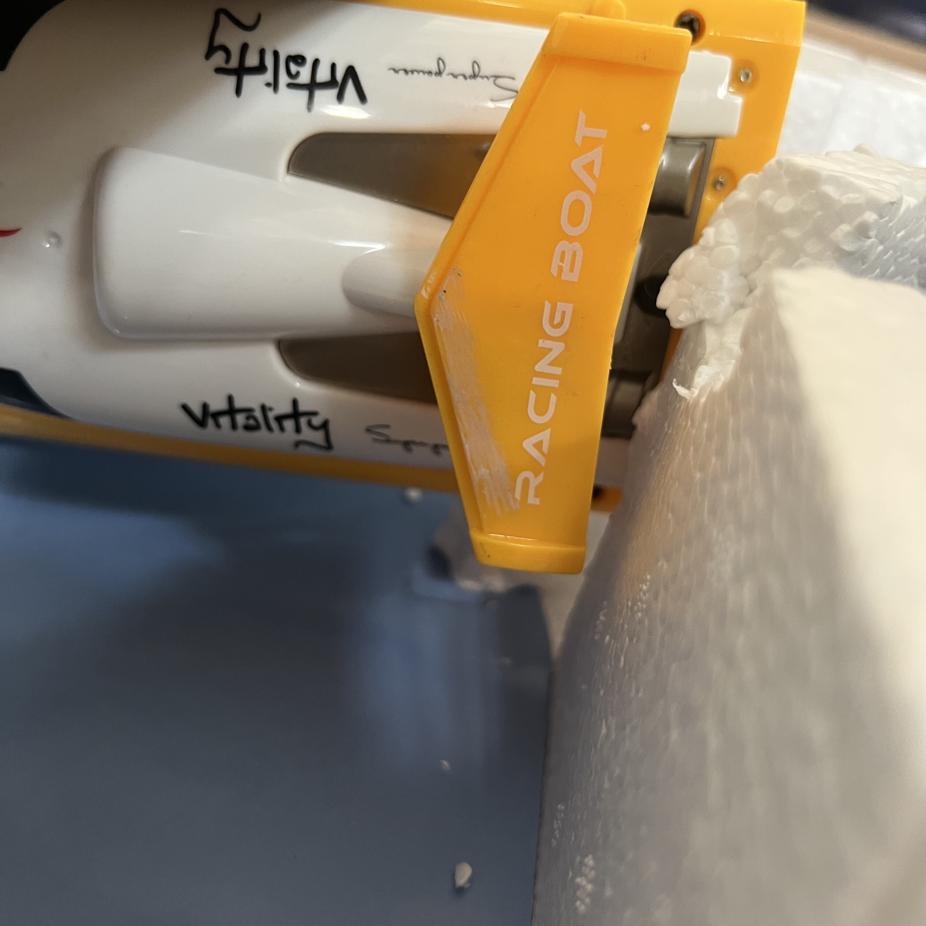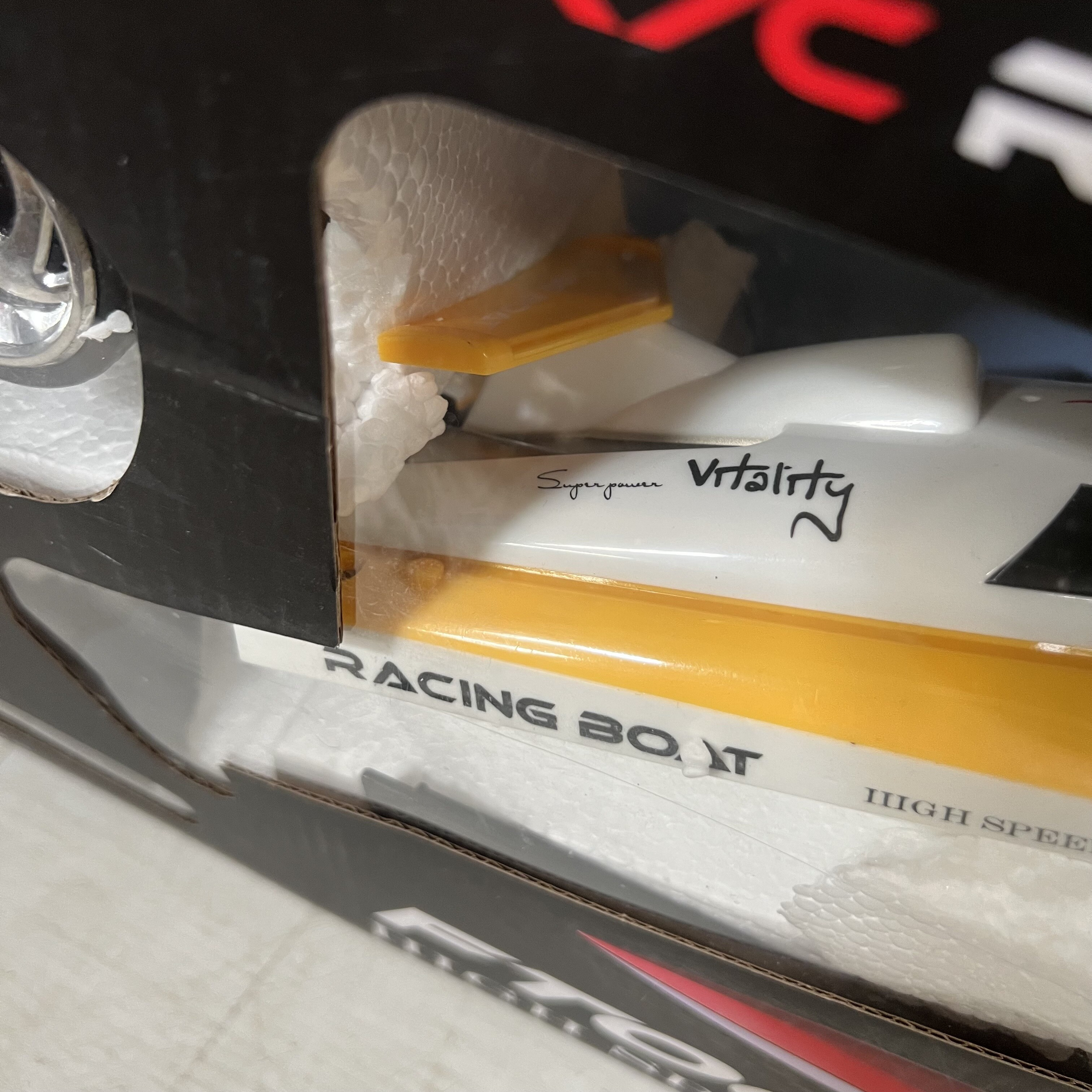 Повредена опаковка, лодката леко замърсена от лепяща лента.