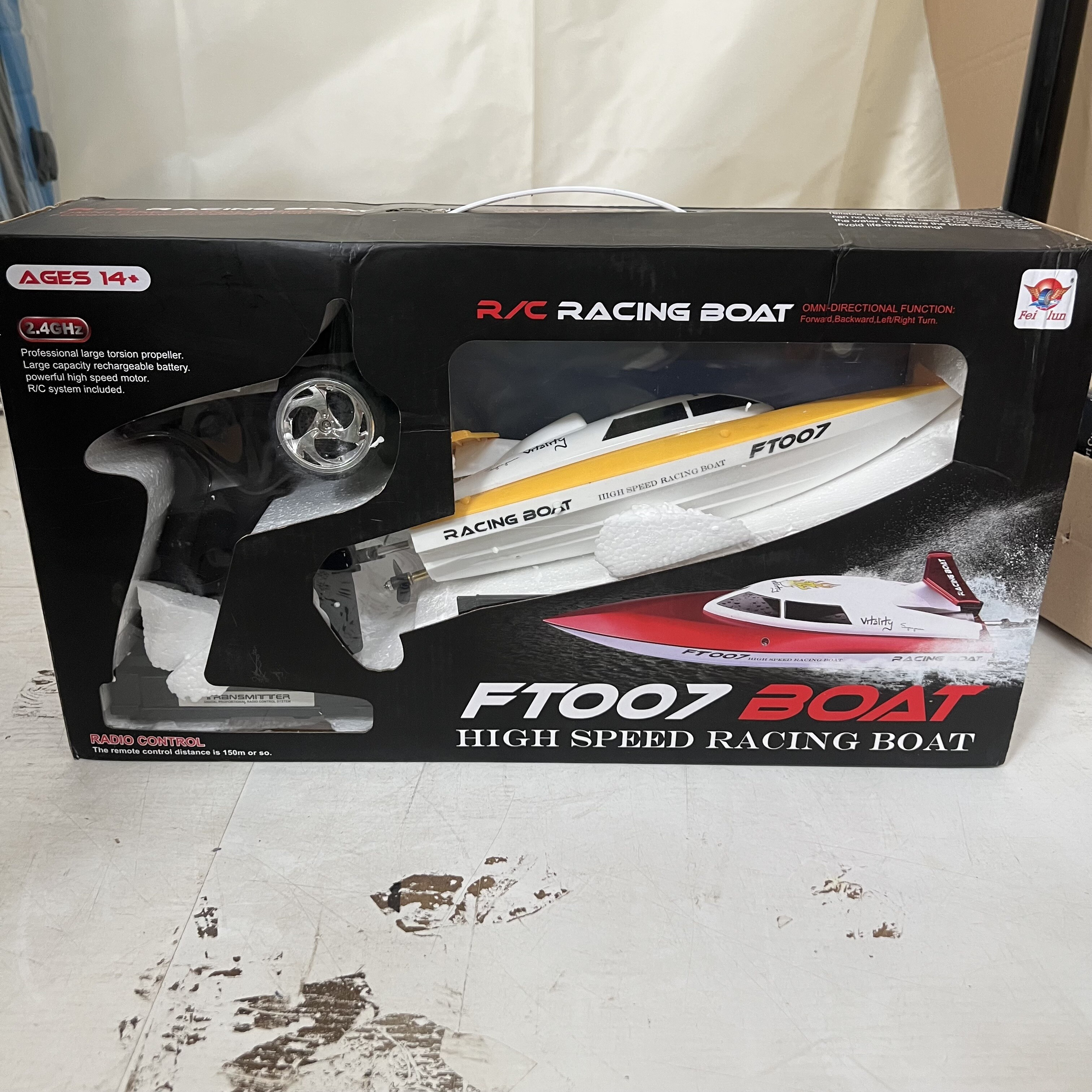 Представяме ви новост на пазара Състезателна спортна лодка FT-07 с предавател 2,4Ghz с размери 35x9x9cm!