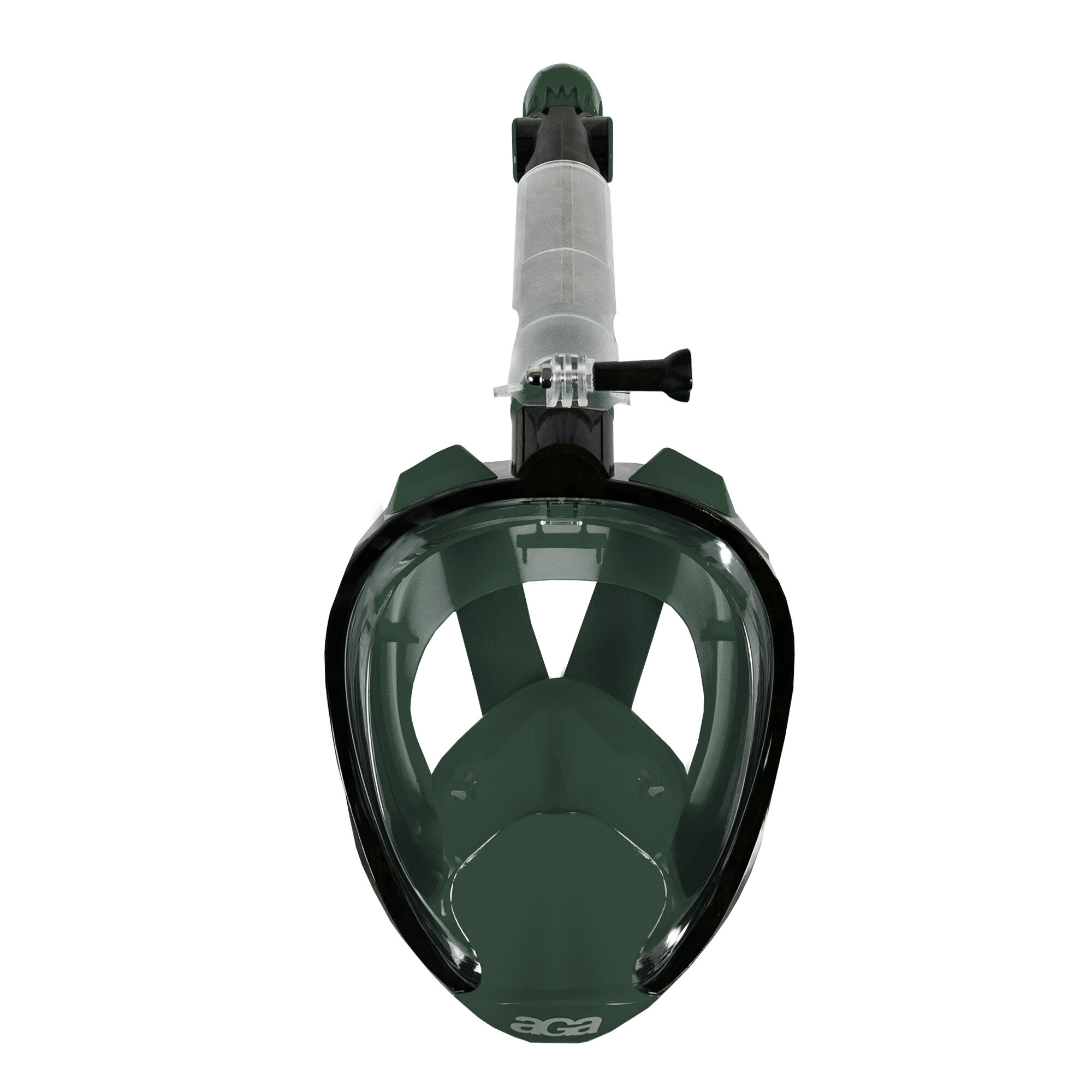 Гмуркащата маска Aga е изработена от поликарбонат и предлага огромна защита срещу проникване на вода, както и комфортно носене. Осигурява 180° зрително поле с циркулационна дихателна система. Вдишвате свеж въздух както през носа, така и през устата, след което той излиза през еднопосочни отвори в маската.