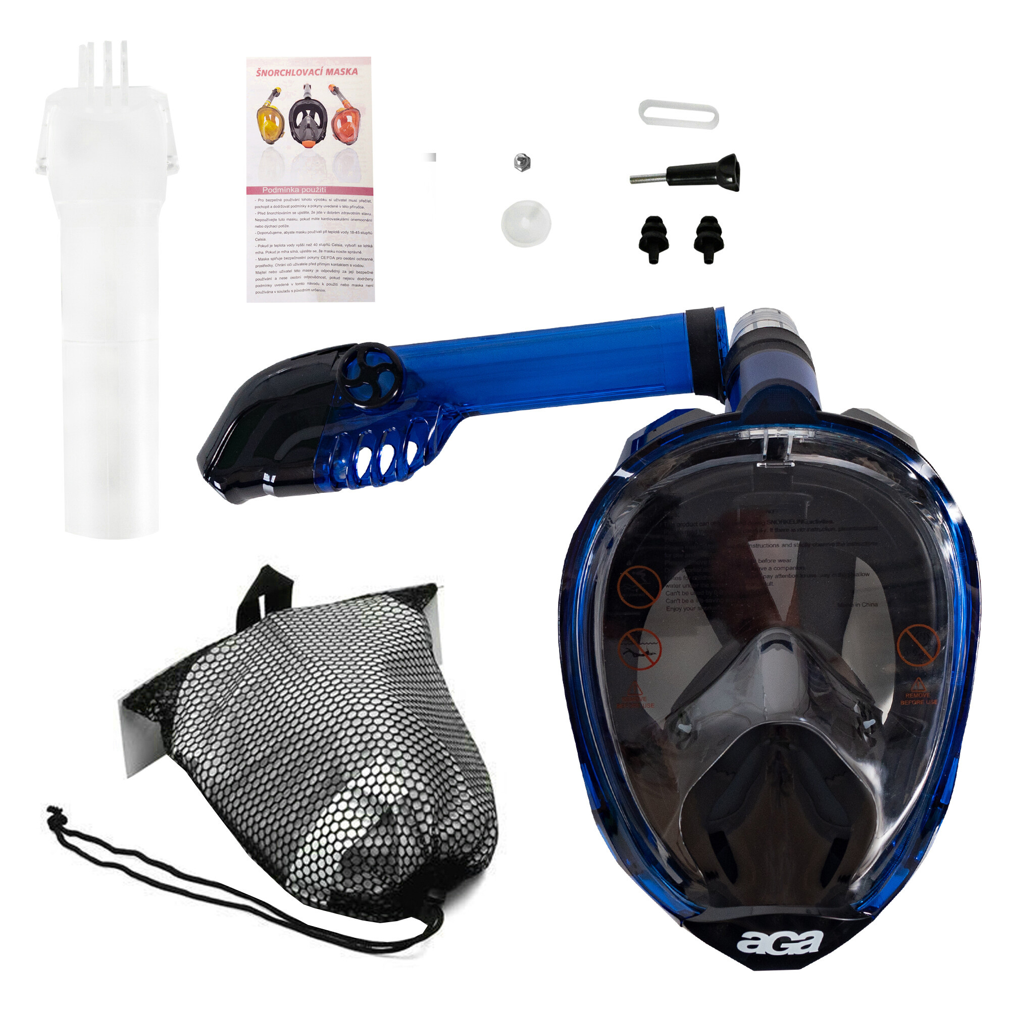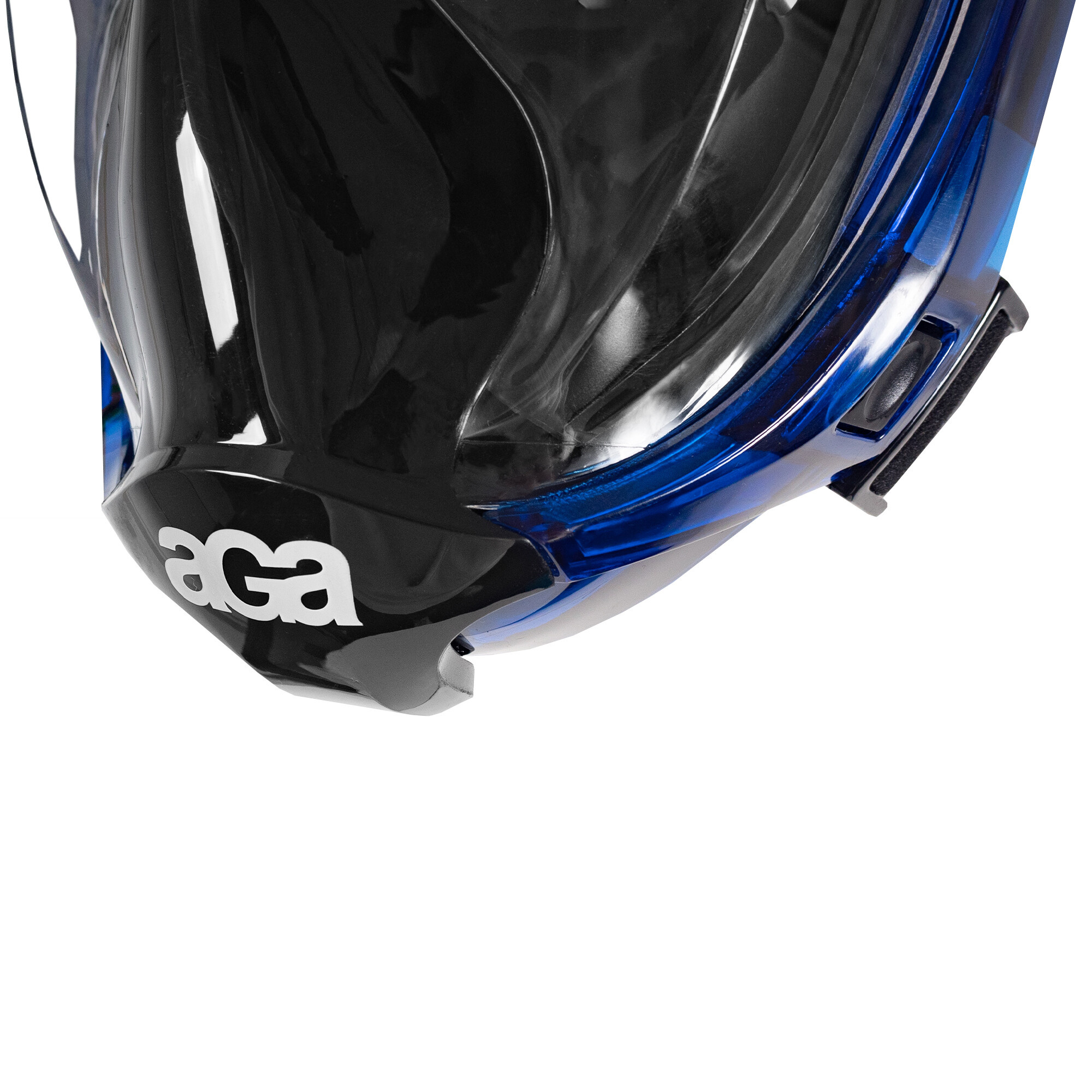 Гмуркащата маска Aga е изработена от поликарбонат и предлага огромна защита срещу проникване на вода, както и комфортно носене. Осигурява 180° зрително поле с циркулационна дихателна система. Вдишвате свеж въздух както през носа, така и през устата, след което той излиза през еднопосочни отвори в маската.