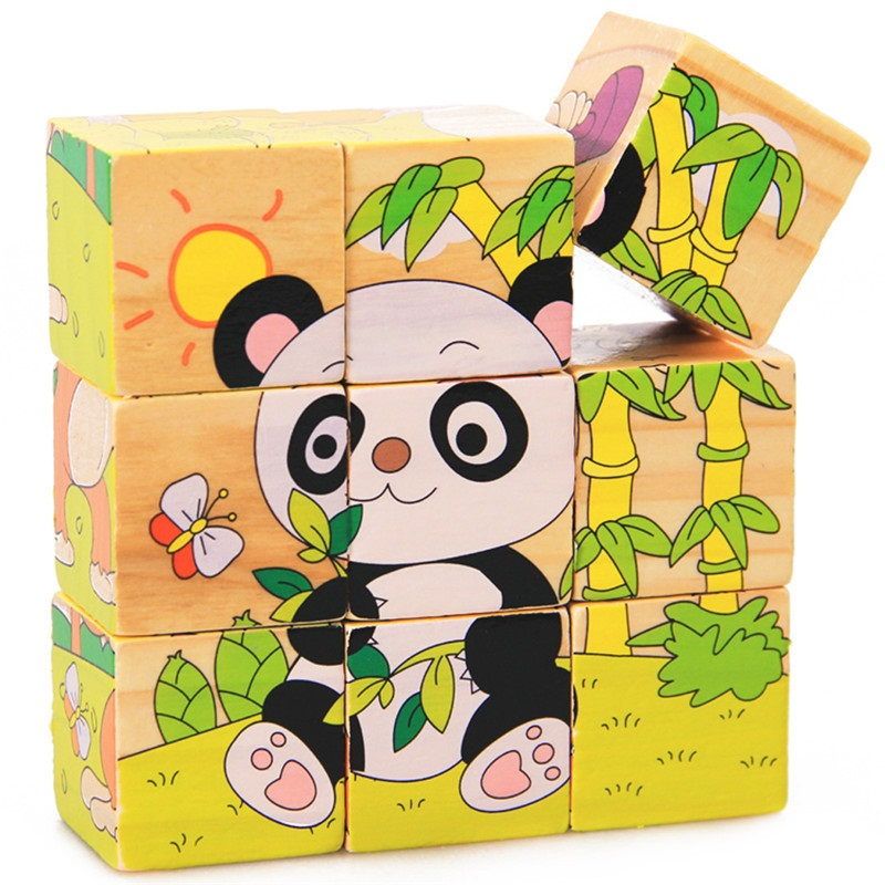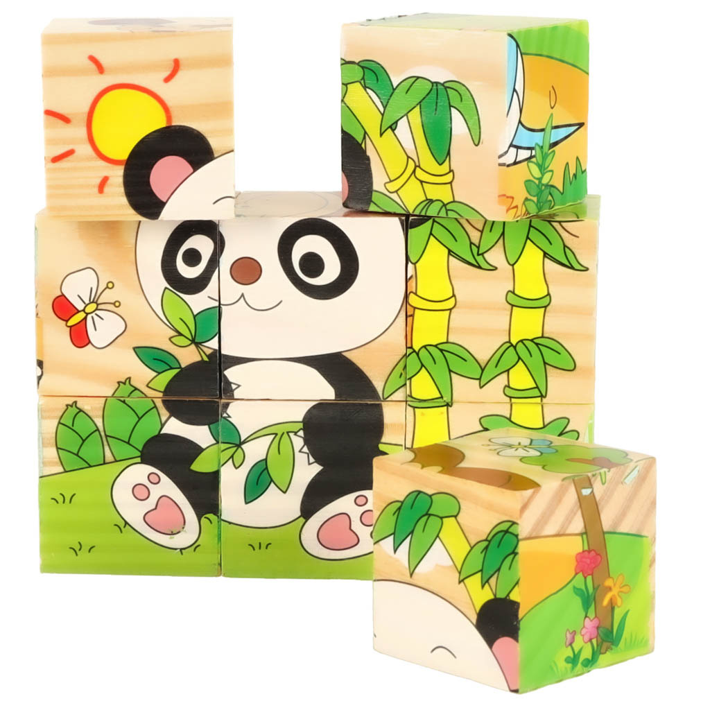 - Комплектът се състои от 9 дървени цветни блокчета с еднакъв размер.