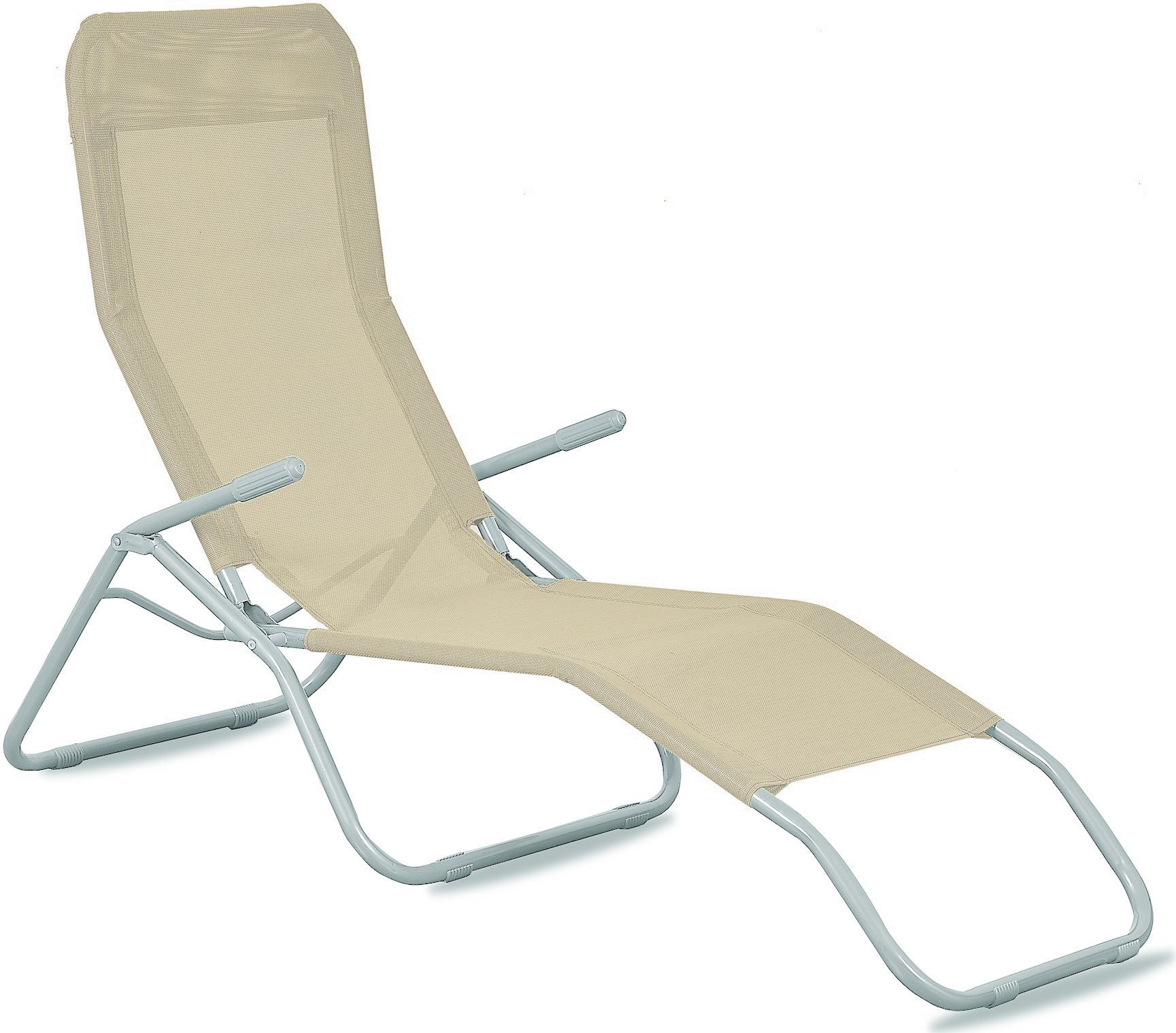 Шезлонгът може да се настрои в две позиции (седнало-легнало), от седнало положение е достатъчно да пренесете тежестта на тялото назад и шезлонгът ще се постави в хоризонтално положение.