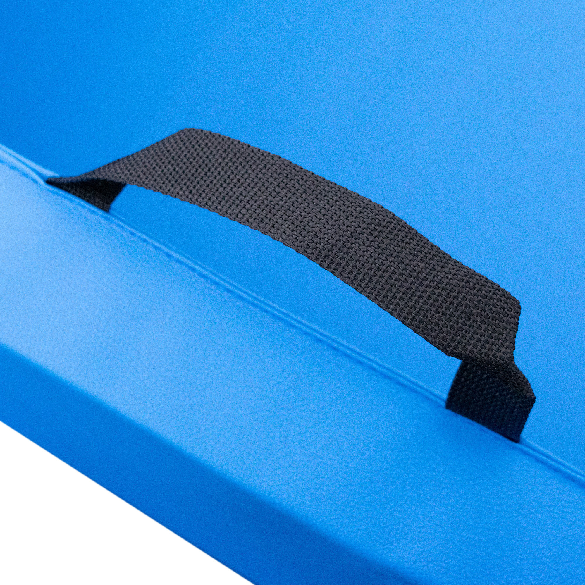 Така лесно може да се предотвратят натъртвания или повреда на пода. Неоспоримо предимство на този модел е минималната му складова площ, тъй като постелката може да се сгъне на 1/3 от общата си дължина. За по-лесна манипулация, постелката има прикрепени дръжки.Подходяща е и за деца и за домашни упражнения.