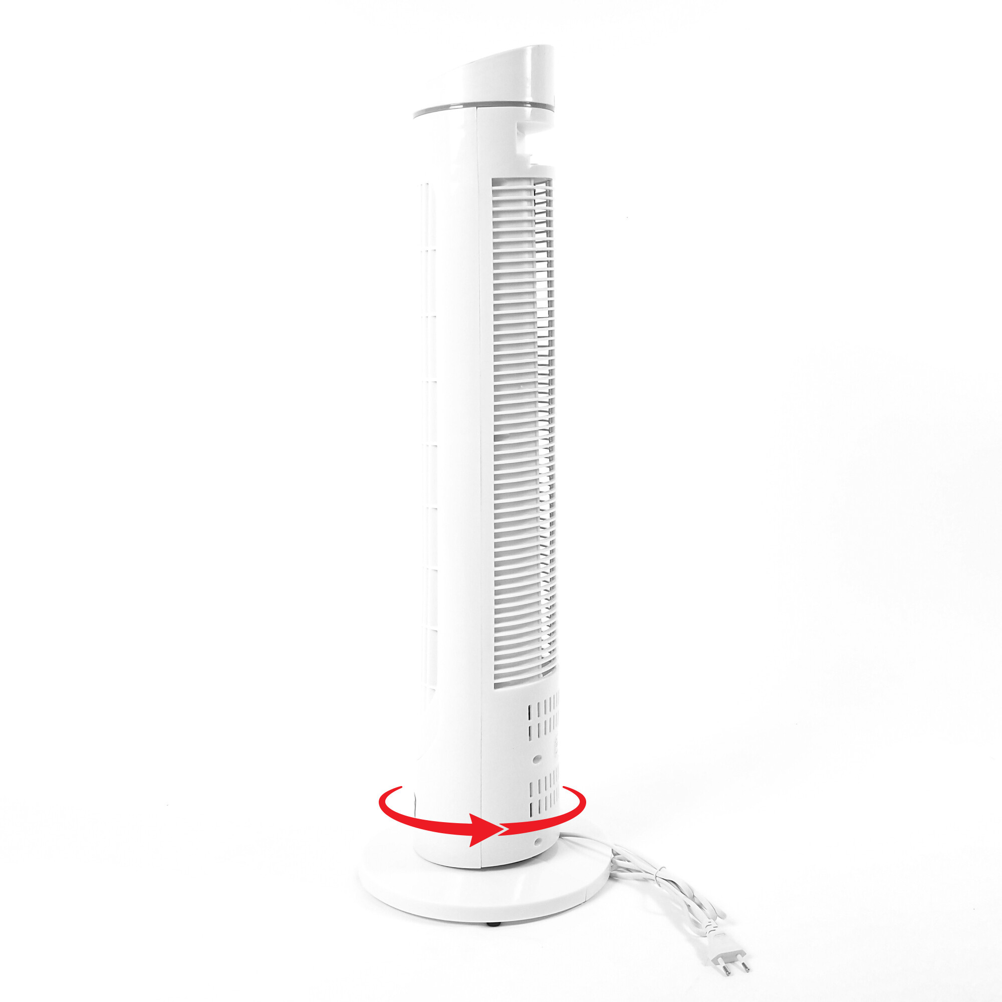 Колонният вентилатор е с височина 76 см и е оборудван със стабилна основа, която гарантира, че няма да се преобърне.