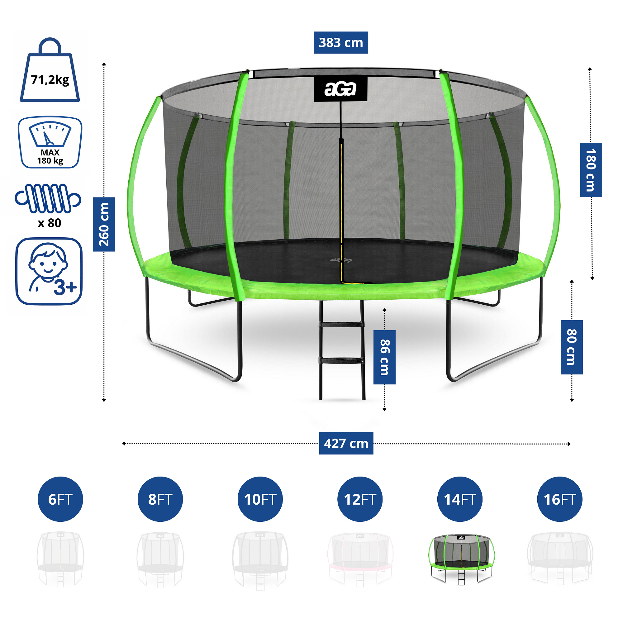 Трамплинът Aga с вътрешна защитна мрежа е специално проектиран и произведен за безопасно забавление на деца и възрастни.
