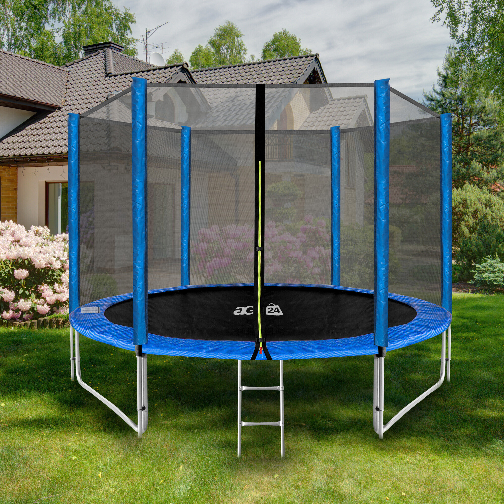 Спецификация на батут Aga SPORT PRO 305 см Син с предпазна мрежа и стълба.