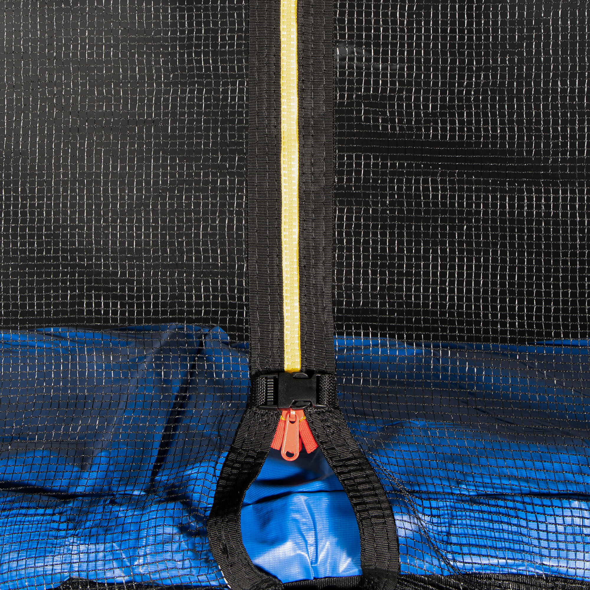 Горната защитна мрежа има вход, оборудван с цип и осигурен с предпазител срещу самоволно разкопчаване.