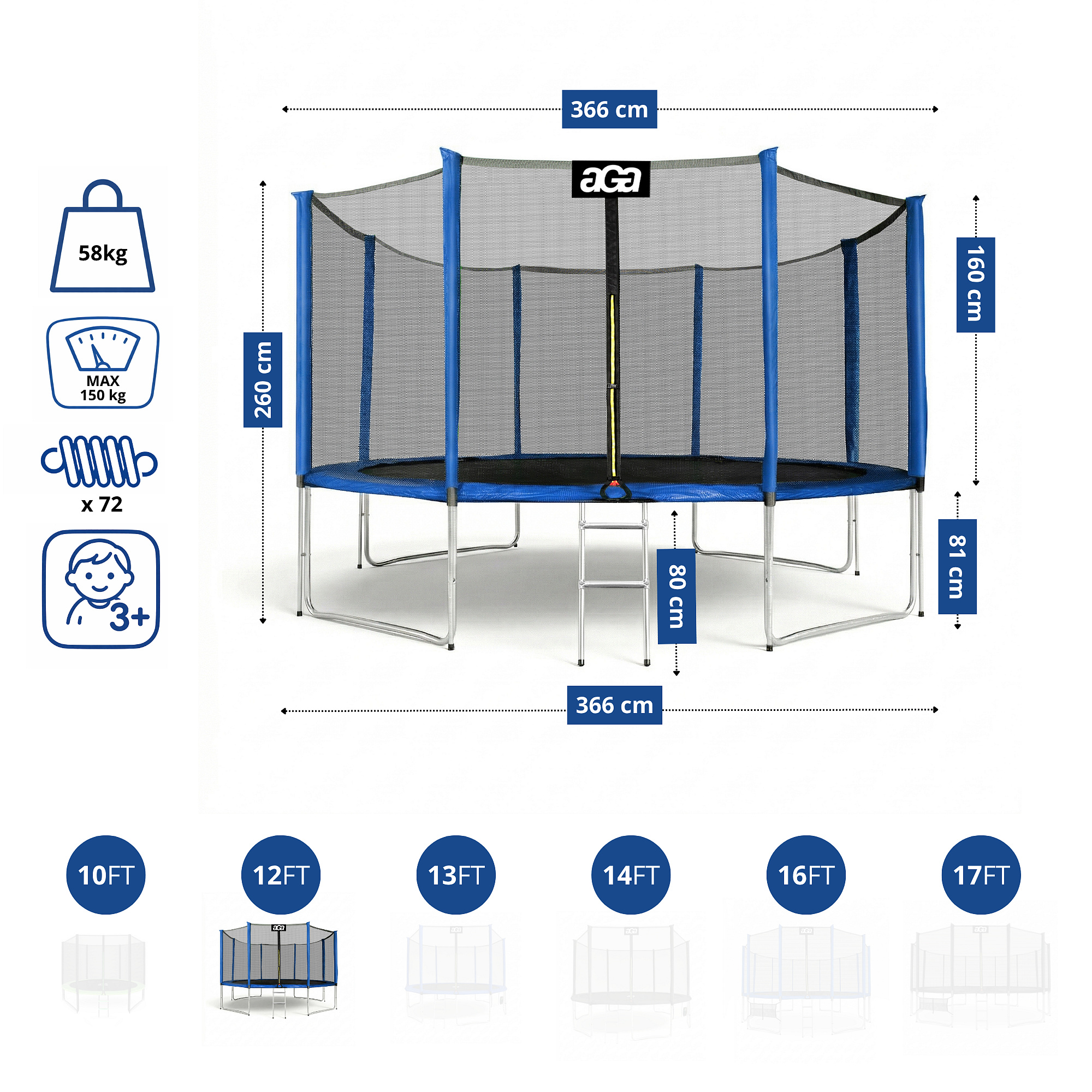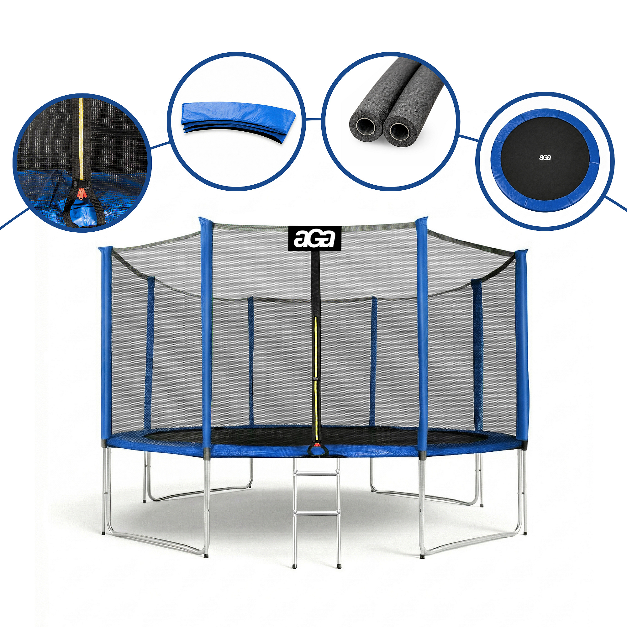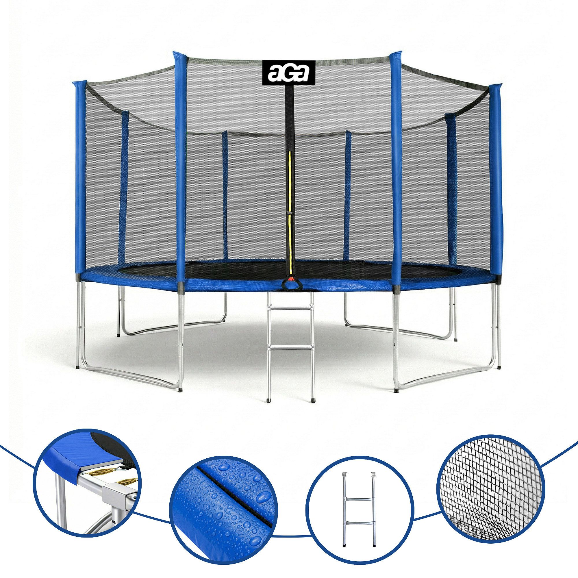 Спецификация на батут Aga SPORT PRO 366 см Blue с предпазна мрежа.