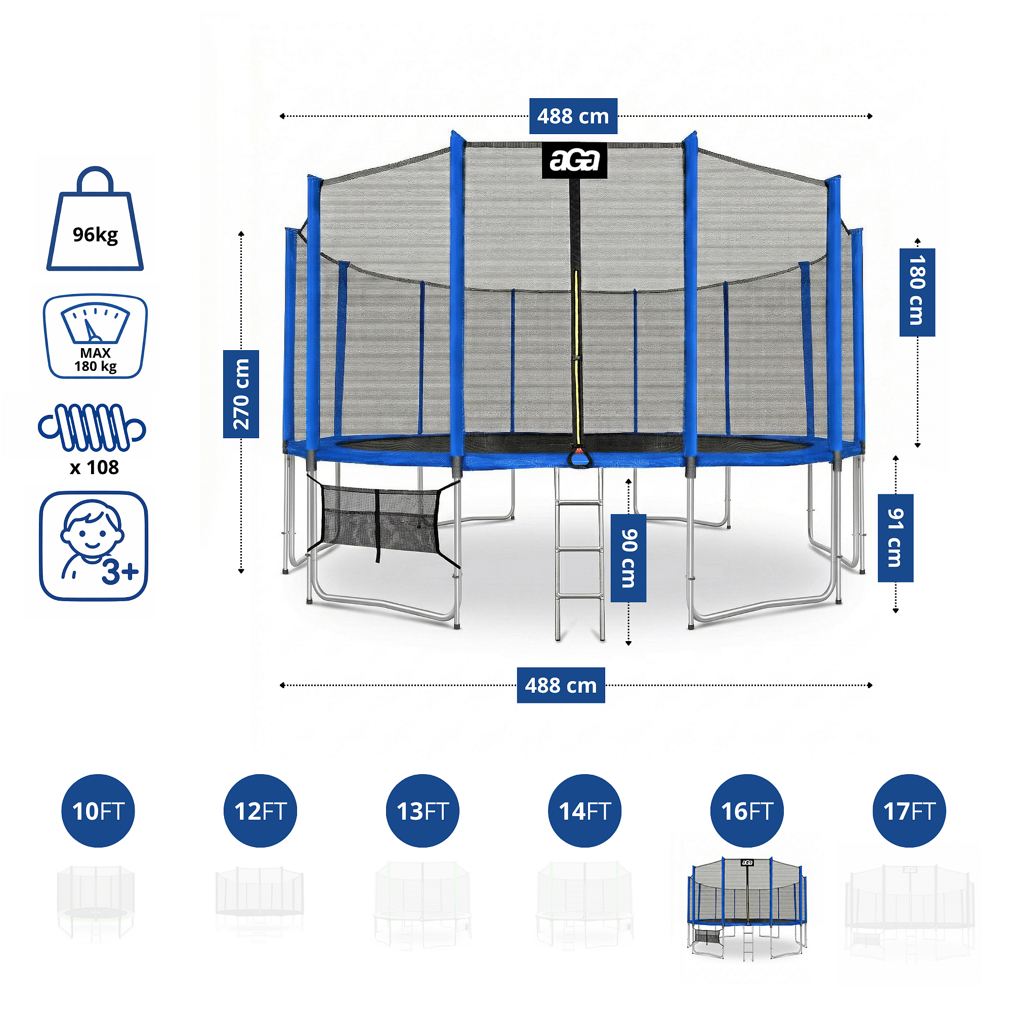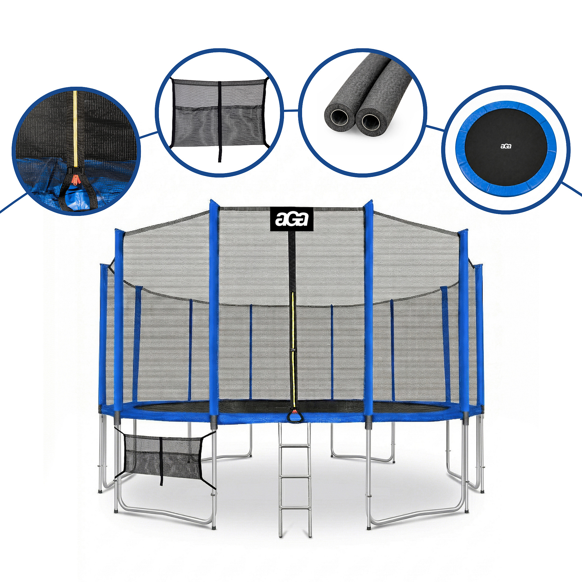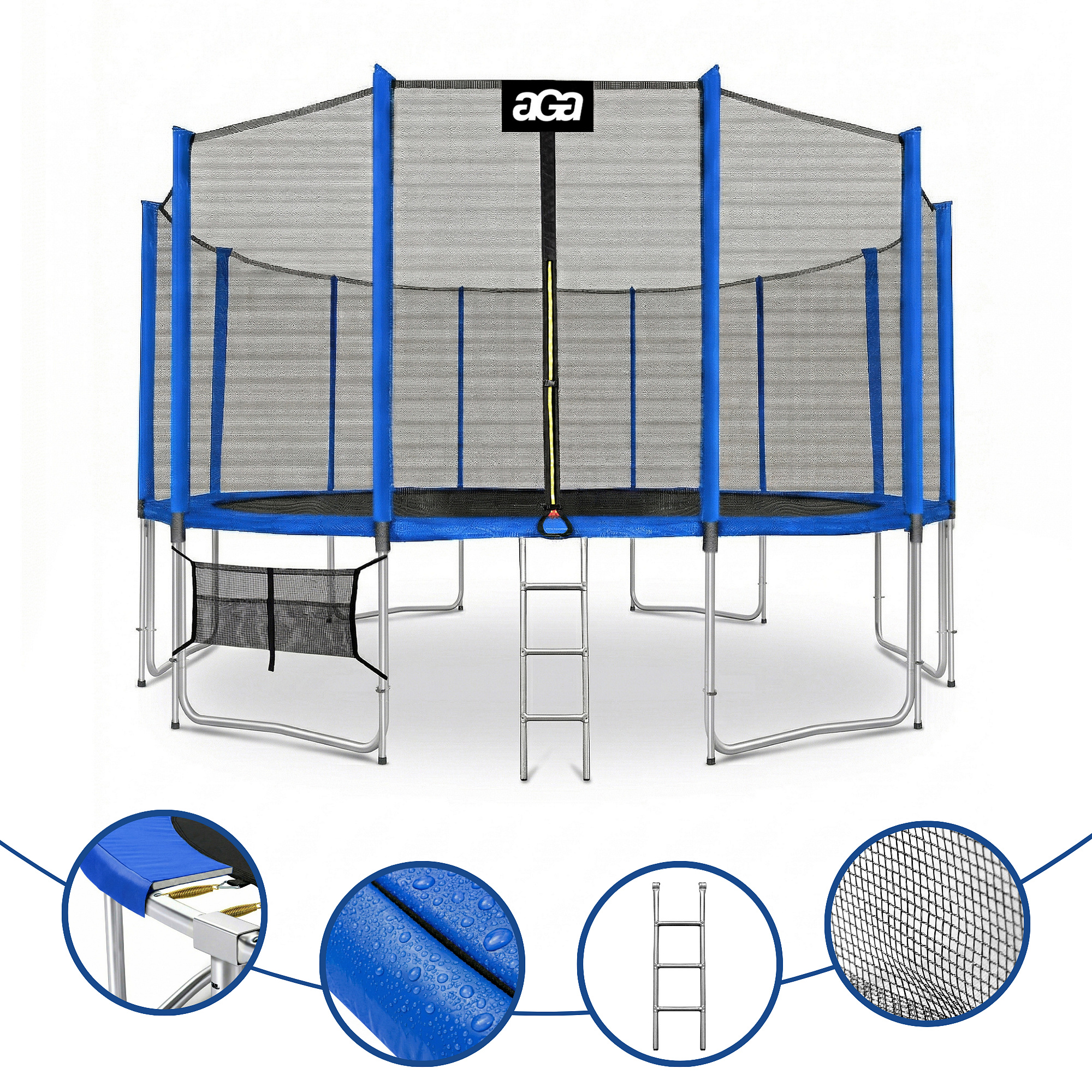 Спецификация на батут Aga SPORT PRO 488-500 см Blue с предпазна мрежа.