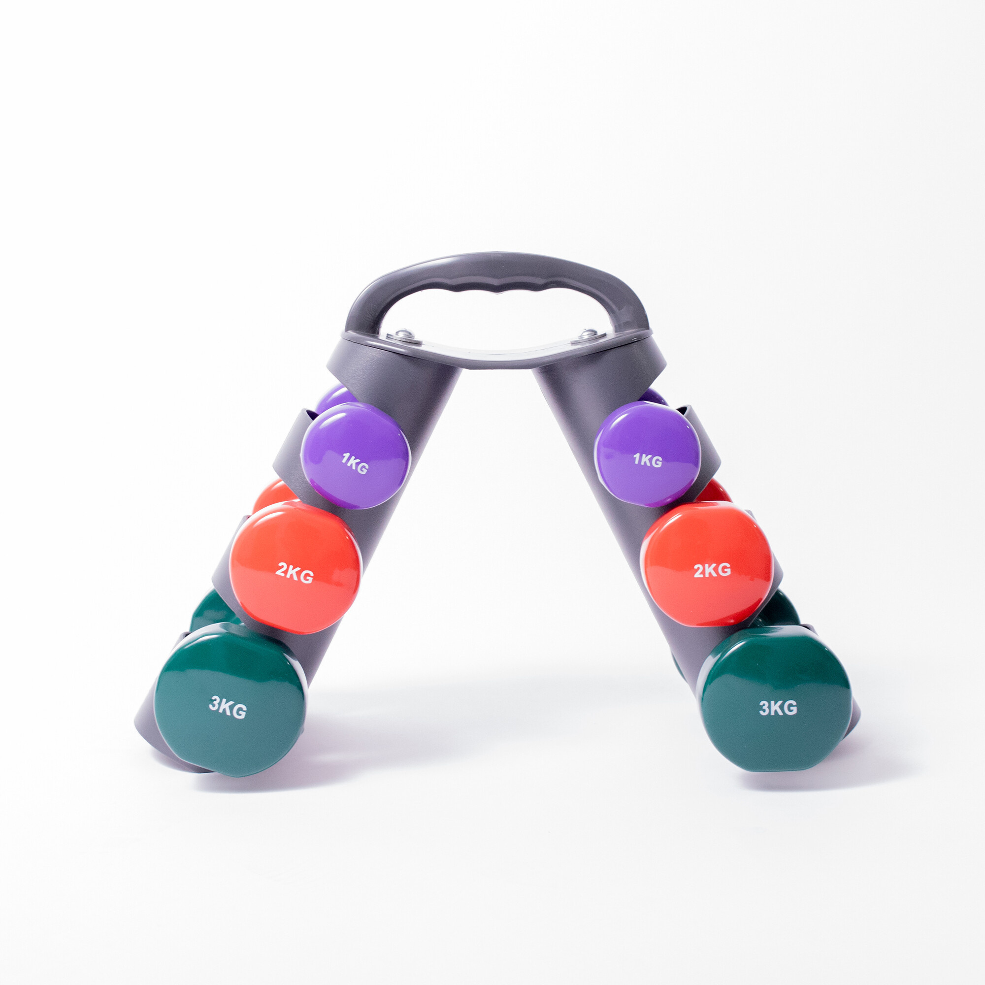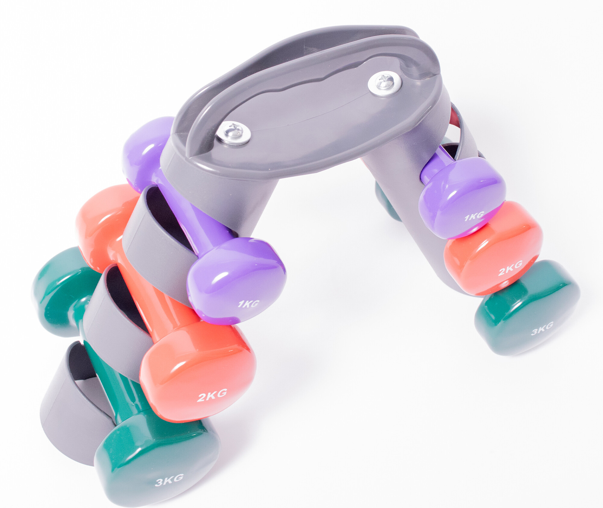 Двойки фитнес гири с тегло 1 кг, 2 кг и 3 кг са подходящи както за изолирани упражнения, така и за динамична кардио тренировка.