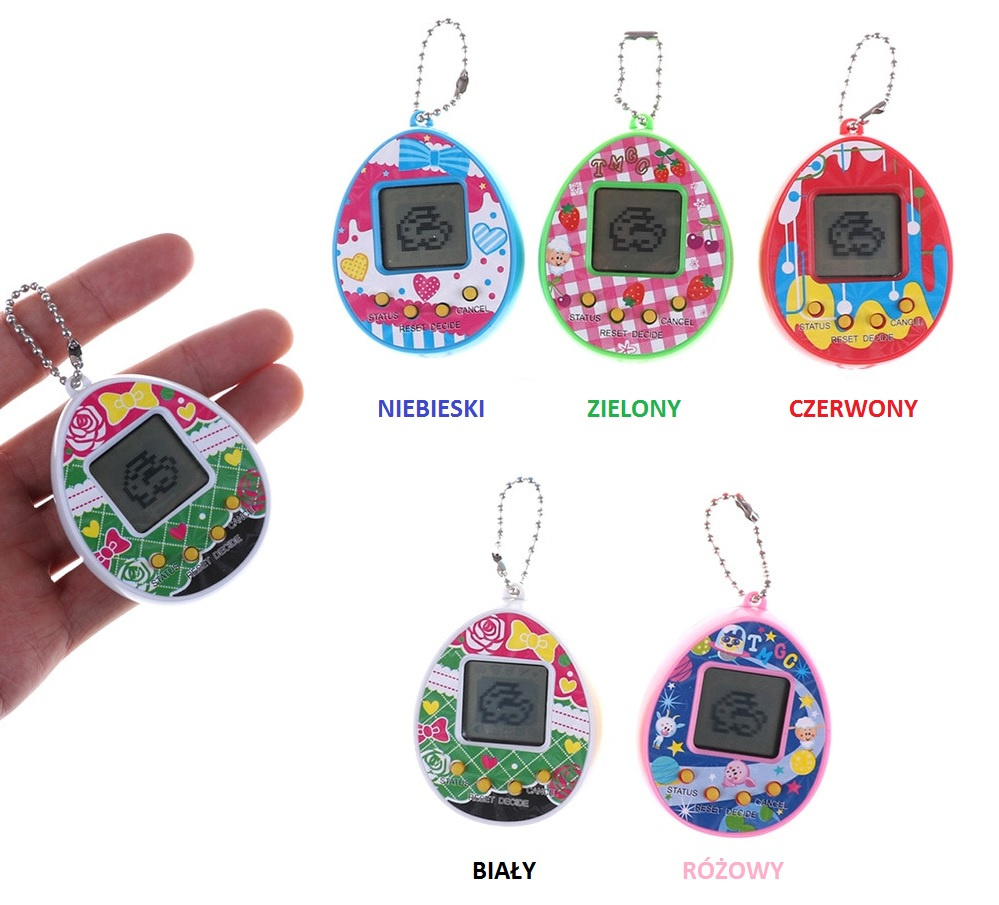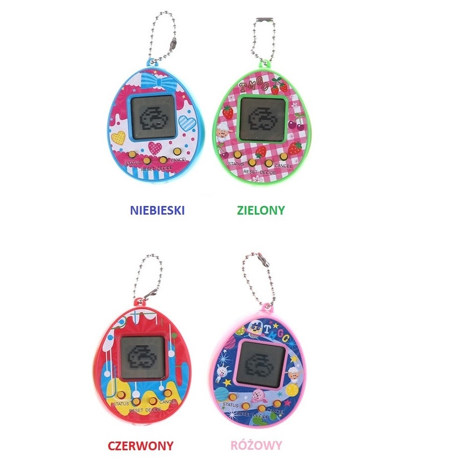 Електронна игра на тамагочи с форма на яйце. Позволява ви да храните, поите и да се грижите за избраното животно. Тя учи на отговорност. Той има звукови ефекти. Предлагат се в няколко дизайна и цветове. Захранва се с батерии AG13 (включени в комплекта). Размери: 7x5 cm.Цялото описание