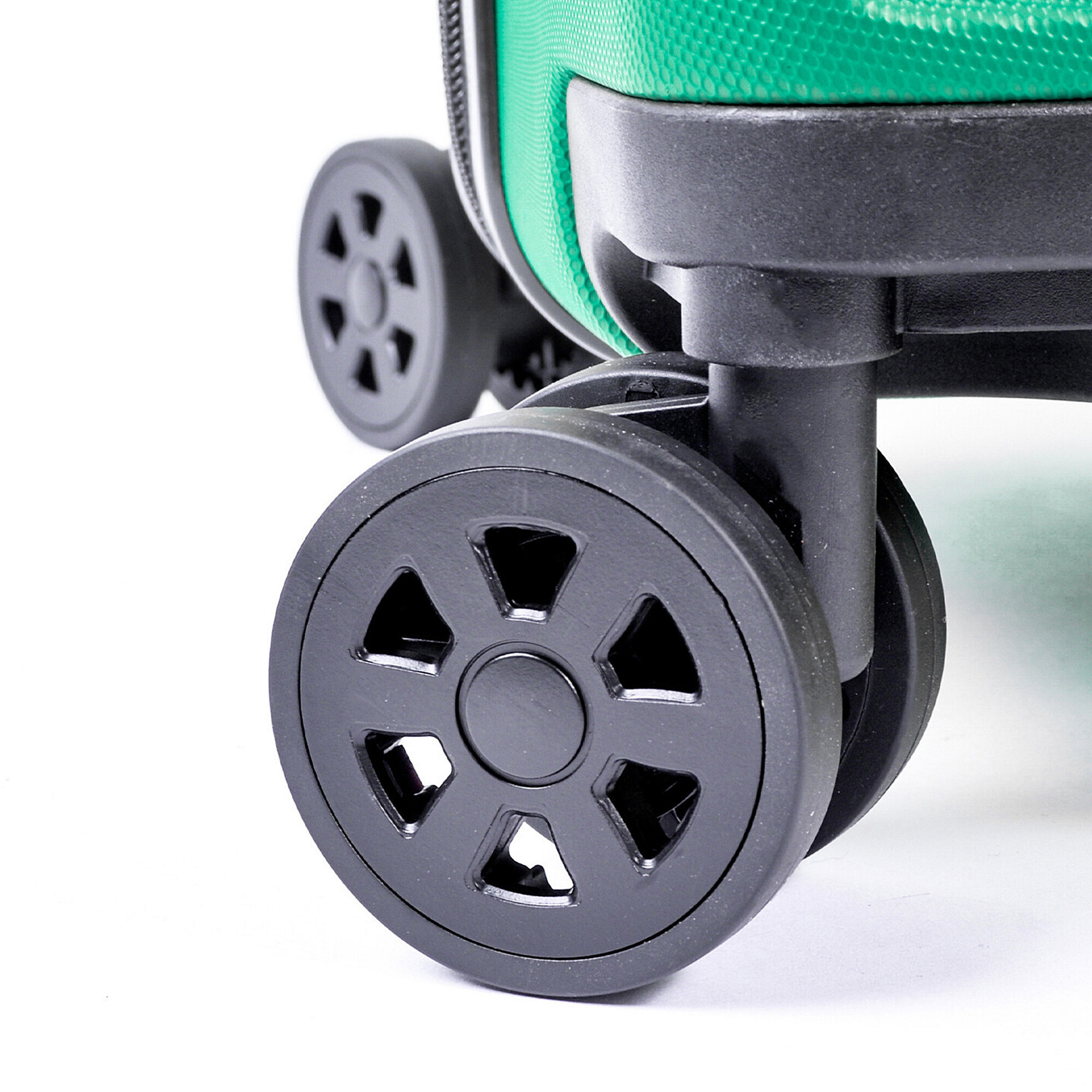 Куфарът е оборудван с 4 въртящи се и двойни колела, които позволяват лесна и плавна манипулация във всички посоки. Благодарение на тези колела можете лесно да премествате куфара дори в тесни пространства, като летищни зали или хотелски коридори. Освен това, двойните колела осигуряват по-голяма стабилност и устойчивост на износване.