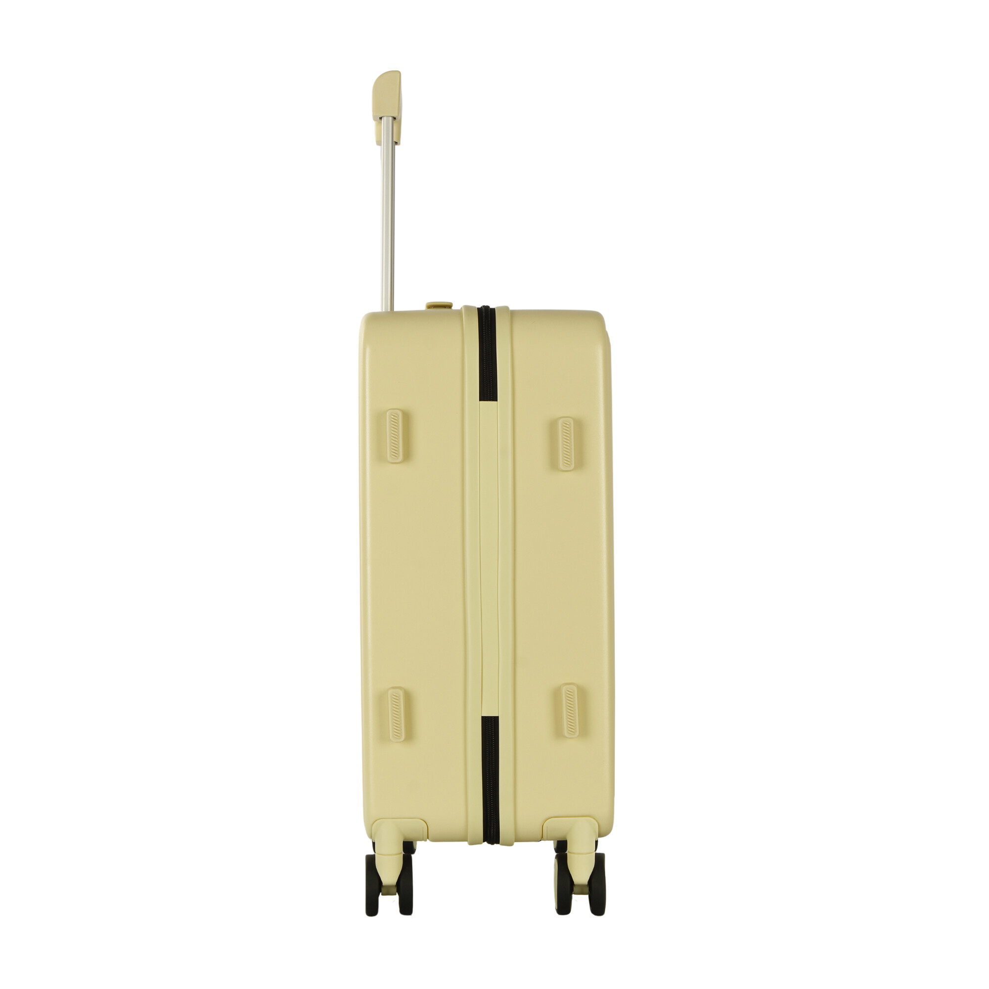 Четири 360° въртящи се двойни колела осигуряват гладко и тихо движение върху всички видове повърхности. Лесното управление се осигурява от телескопична тройно регулируема дръжка и две здрави дръжки от горната и страничната част на куфара.
