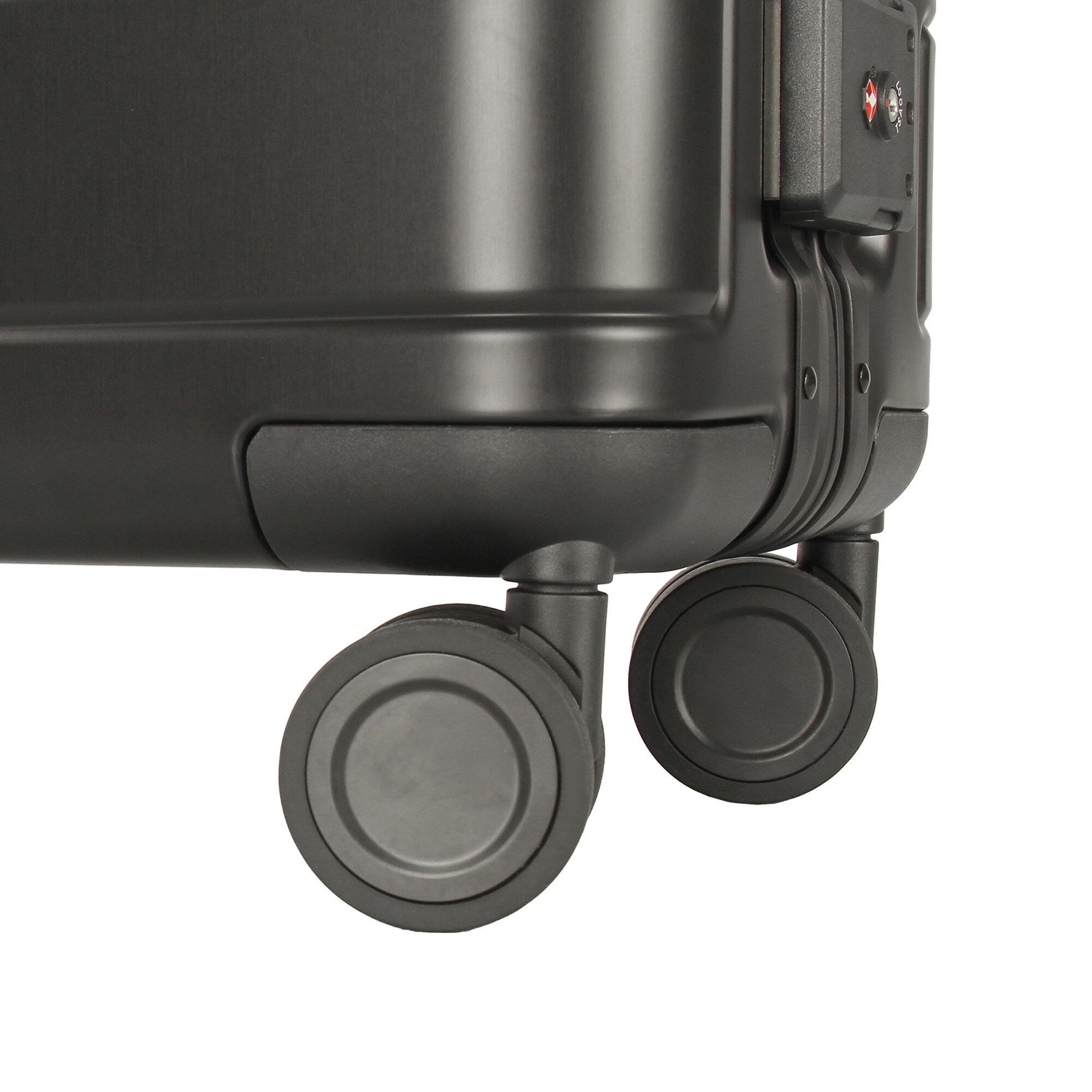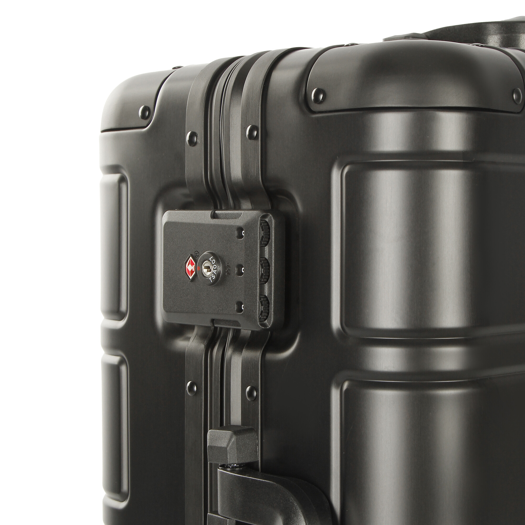 Куфарът е изработен от здрав алуминиев материал, който осигурява максимална защита на вашите вещи. Алуминият придава на куфара не само премиум вид, но и отлична устойчивост на удари и износване. Благодарение на това, този ръчен багаж е идеален за чести пътувания със самолет или влак.
