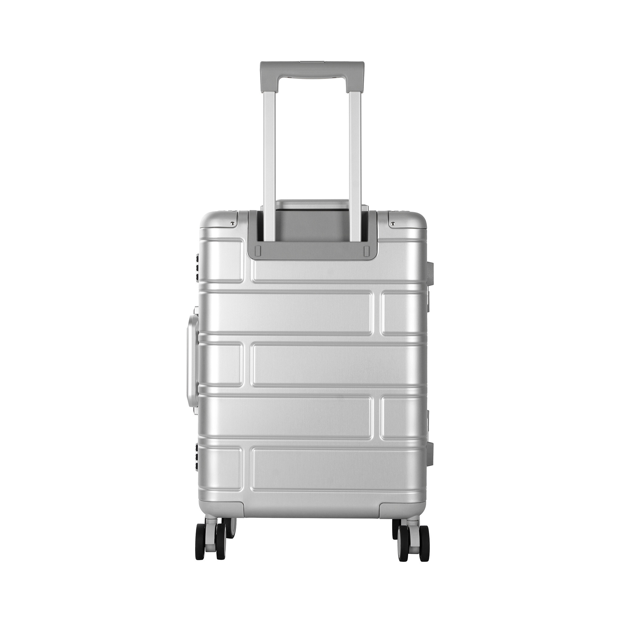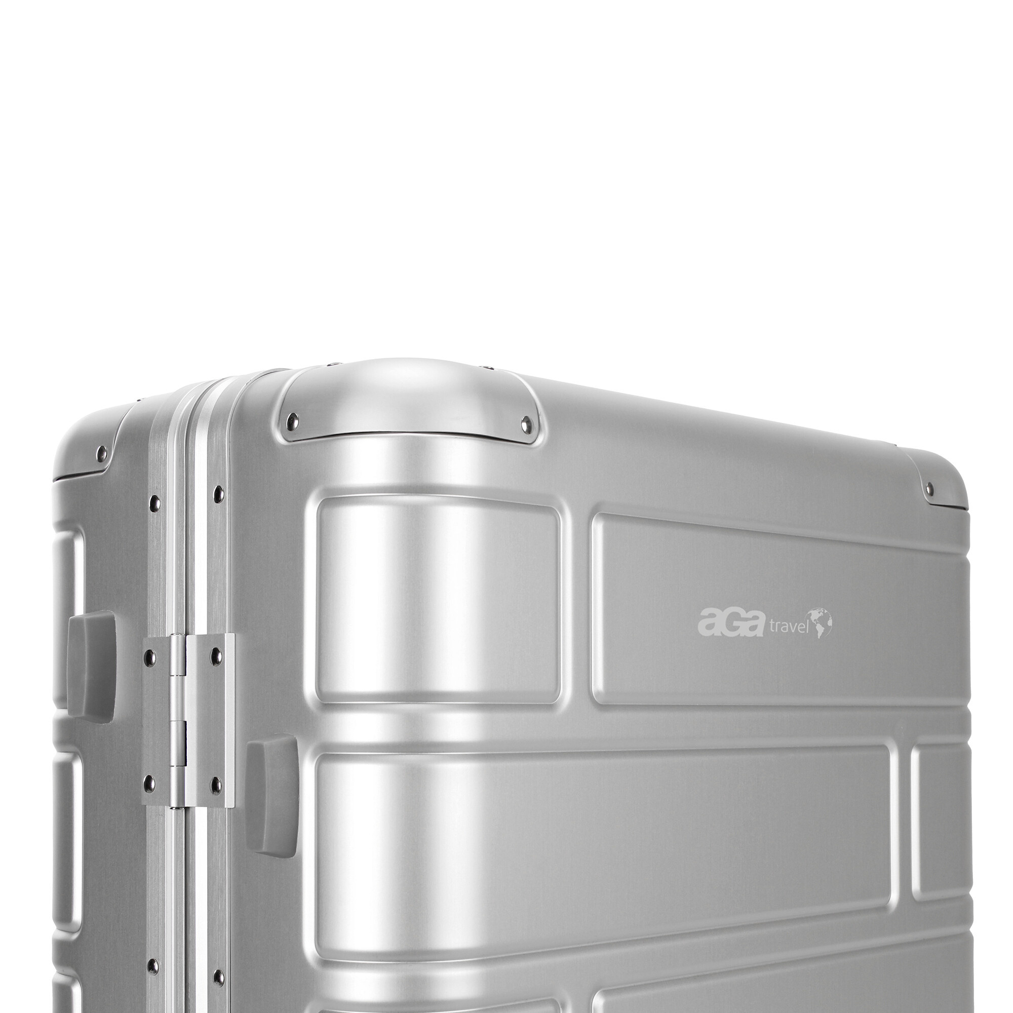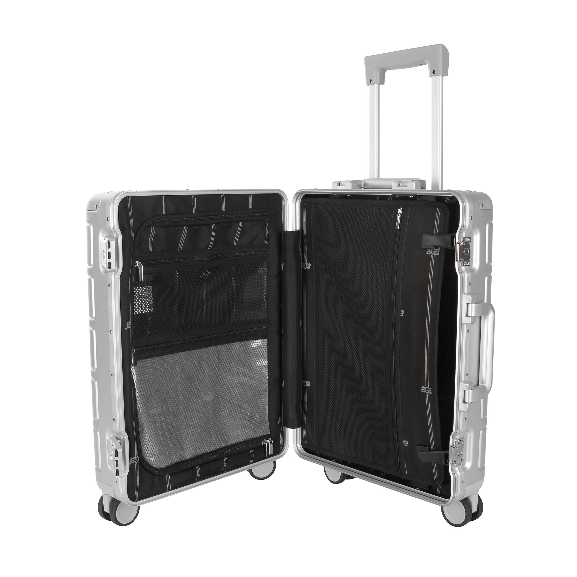 Куфарът е изработен от здрав алуминиев материал, който осигурява максимална защита на вашите вещи. Алуминият придава на куфара не само премиум вид, но и отлична устойчивост на удари и износване. Благодарение на това, този ръчен багаж е идеален за чести пътувания със самолет или влак.