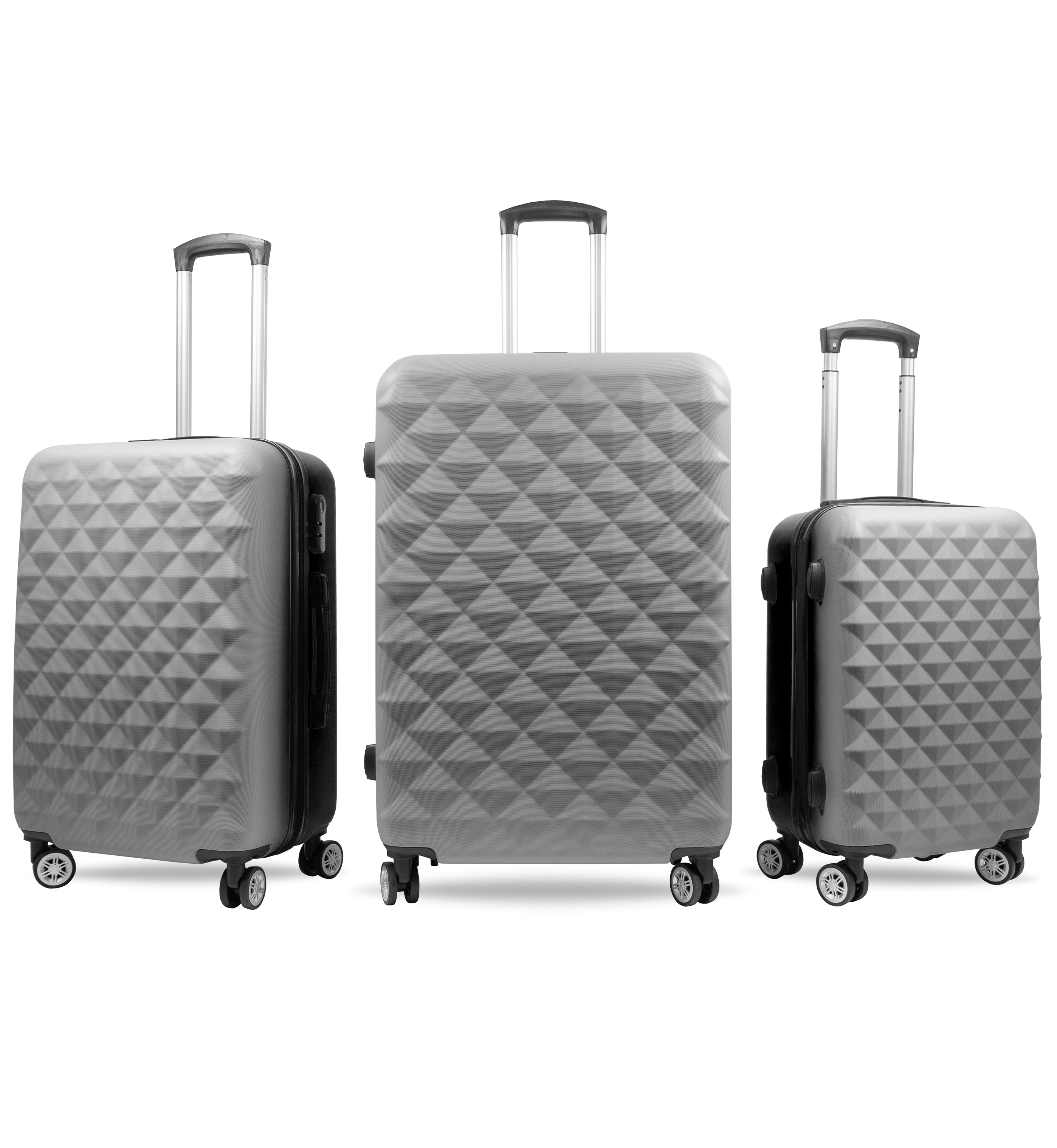 Всички пътни куфари в комплекта са оборудвани с четири въртящи се (на 360 °) двойни колела, благодарение на които имате възможност да теглите куфара, което значително улеснява манипулацията.