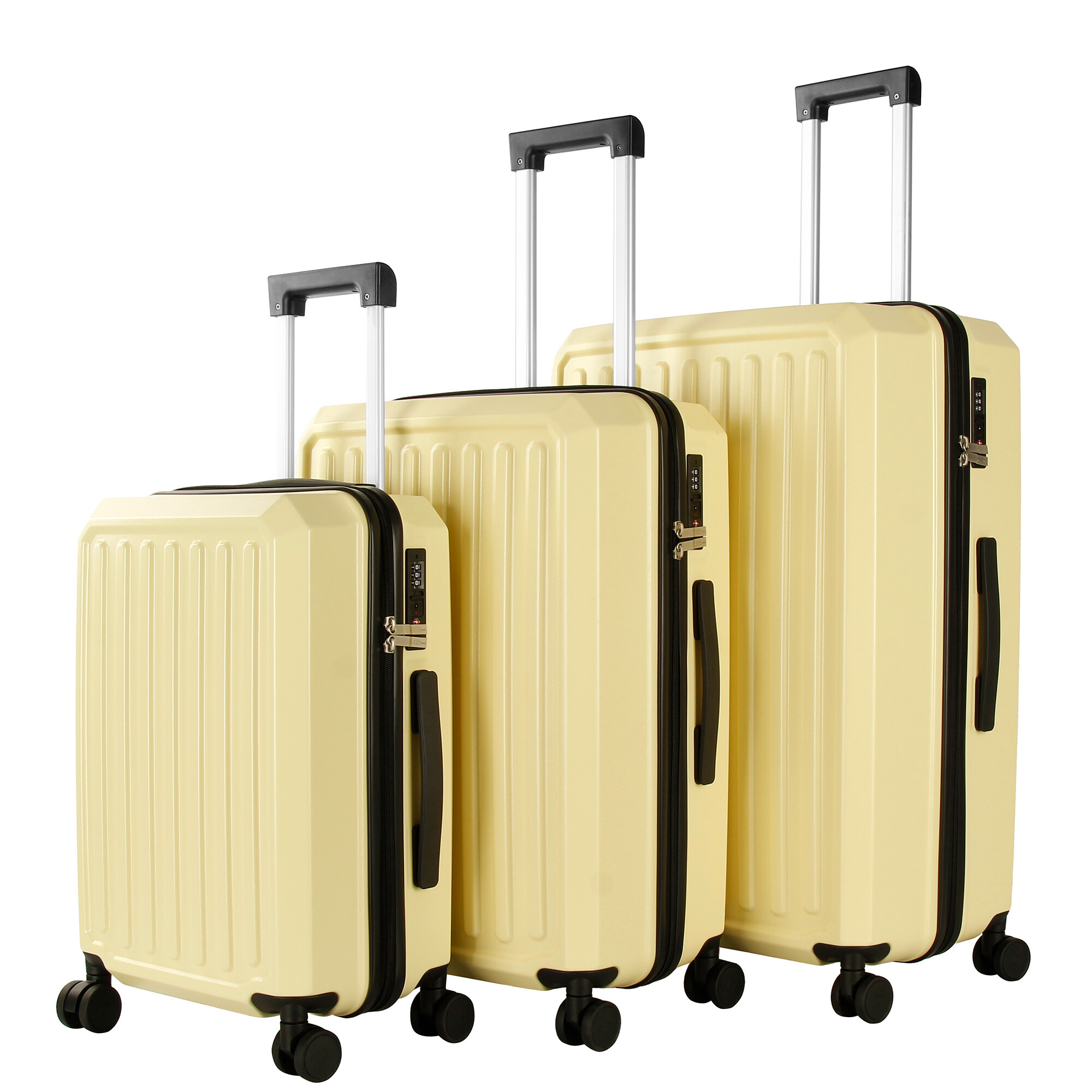 Куфарите са изработени от комбинация от ABS и PC материали, което гарантира тяхната висока издръжливост и лекота. ABS (акрилонитрил-бутадиен-стирен) е известен със своята здравина и устойчивост на удари, докато PC (поликарбонат) добавя допълнителен слой защита и гъвкавост. Тази комбинация от материали гарантира, че вашият багаж ще бъде защитен от повреди по време на транспортиране.