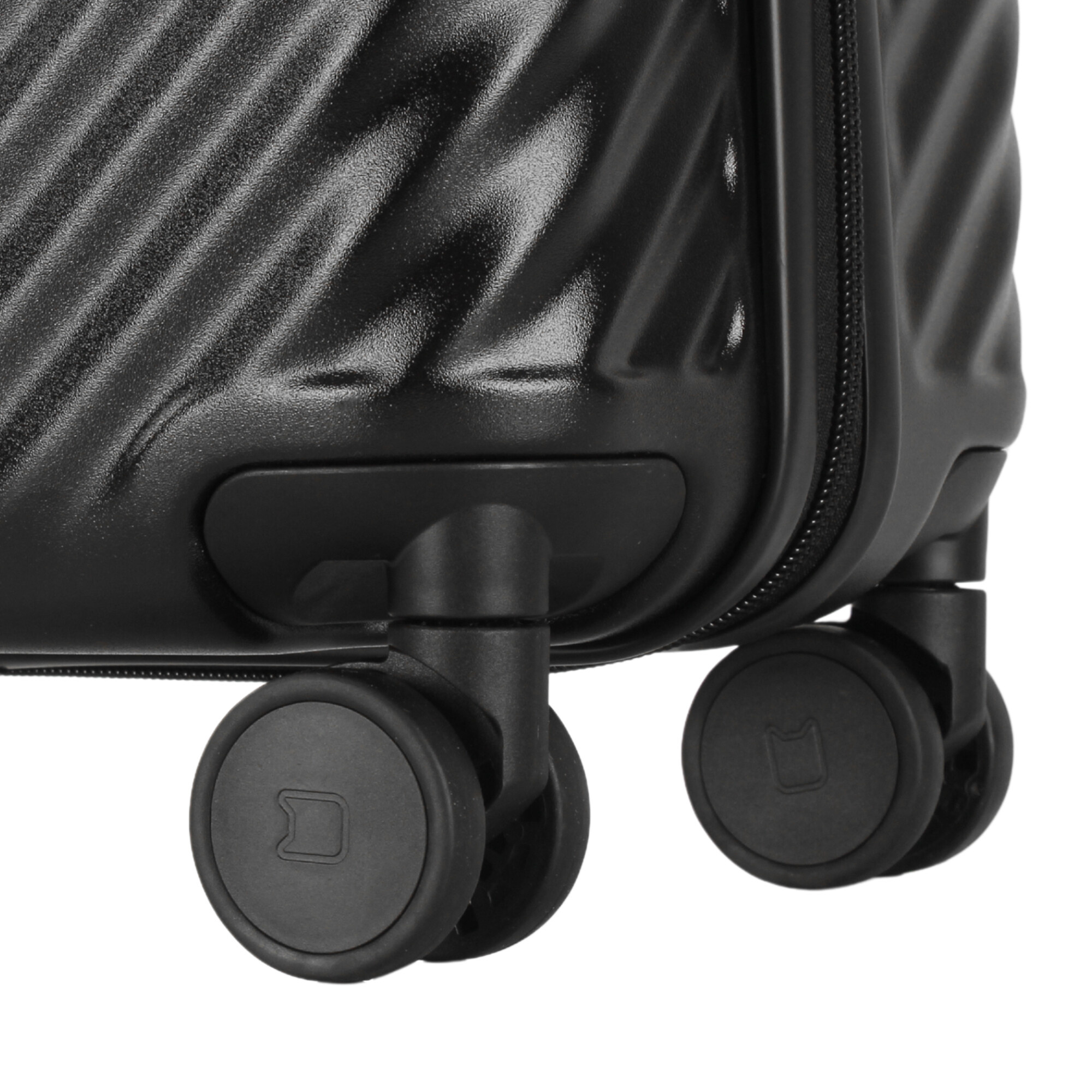 Всеки куфар е оборудван с 4 въртящи се и двойни колела, които позволяват лесна и плавна манипулация във всички посоки. Благодарение на тези колела можете лесно да премествате куфарите дори в тесни пространства, като летищни зали или хотелски коридори. Освен това, двойните колела осигуряват по-голяма стабилност и устойчивост на износване.